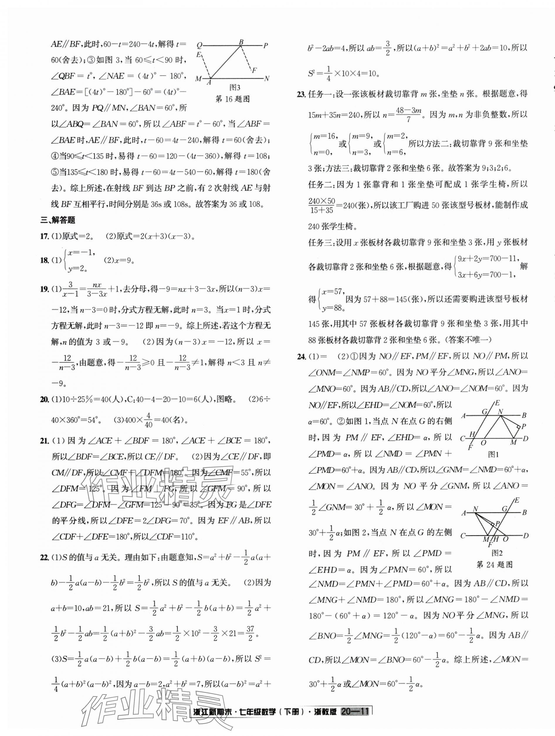 注:目前有些书本章节名称可能整理的还不是很完善,但都是按照顺序排列的,请同学们按照顺序仔细查找。练习册 2025年励耘书业浙江新期末七年级数学下册浙教版 答案主要是用来给同学们做完题方便对答案用的,请勿直接抄袭。