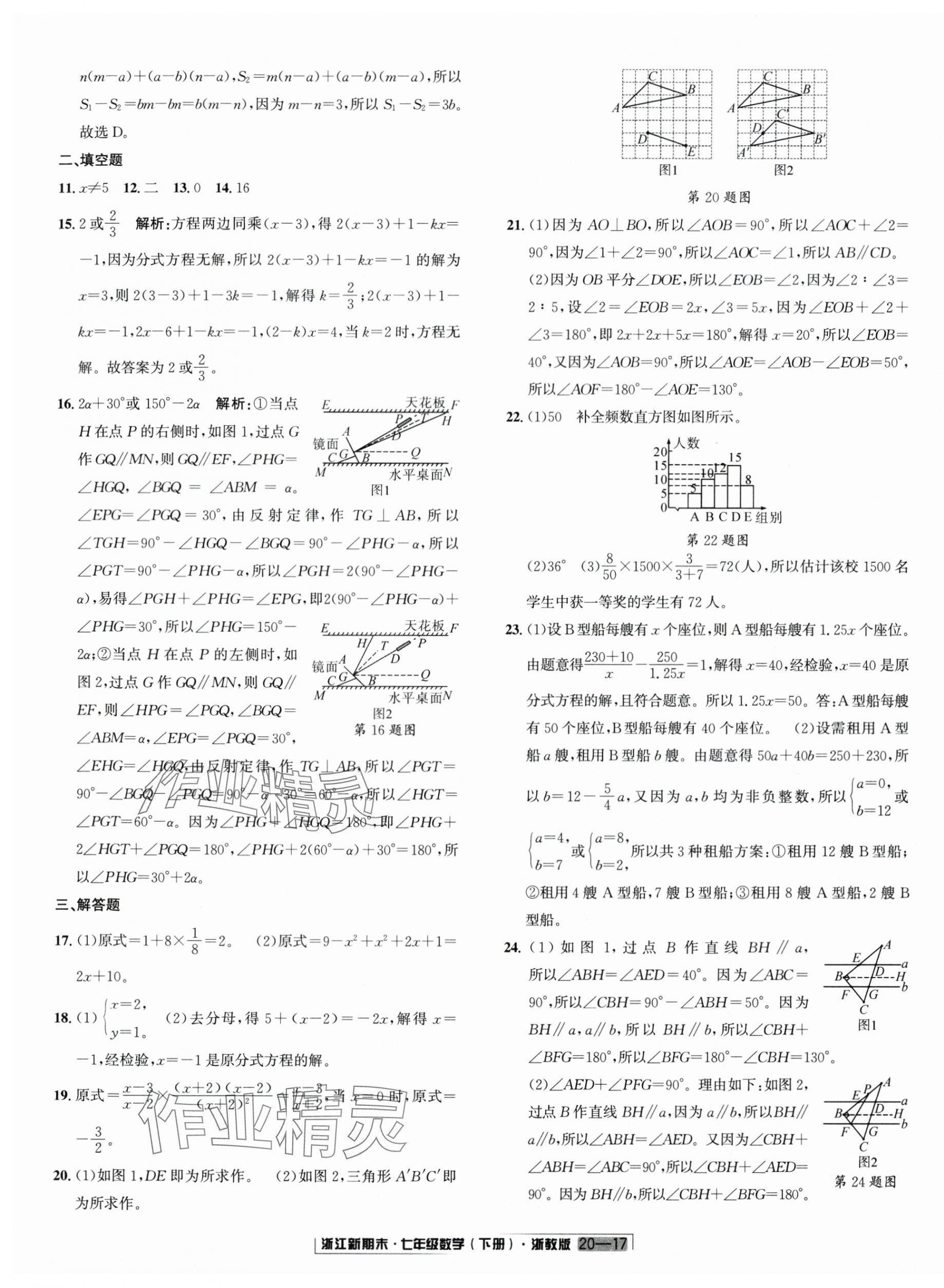 注:目前有些书本章节名称可能整理的还不是很完善,但都是按照顺序排列的,请同学们按照顺序仔细查找。练习册 2025年励耘书业浙江新期末七年级数学下册浙教版 答案主要是用来给同学们做完题方便对答案用的,请勿直接抄袭。