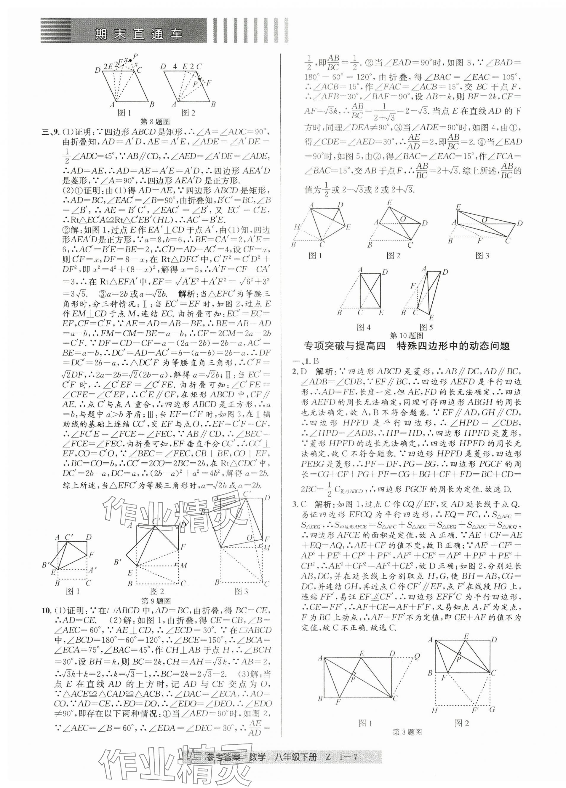 注:目前有些书本章节名称可能整理的还不是很完善,但都是按照顺序排列的,请同学们按照顺序仔细查找。练习册 2025年期末直通车八年级数学下册浙教版 答案主要是用来给同学们做完题方便对答案用的,请勿直接抄袭。