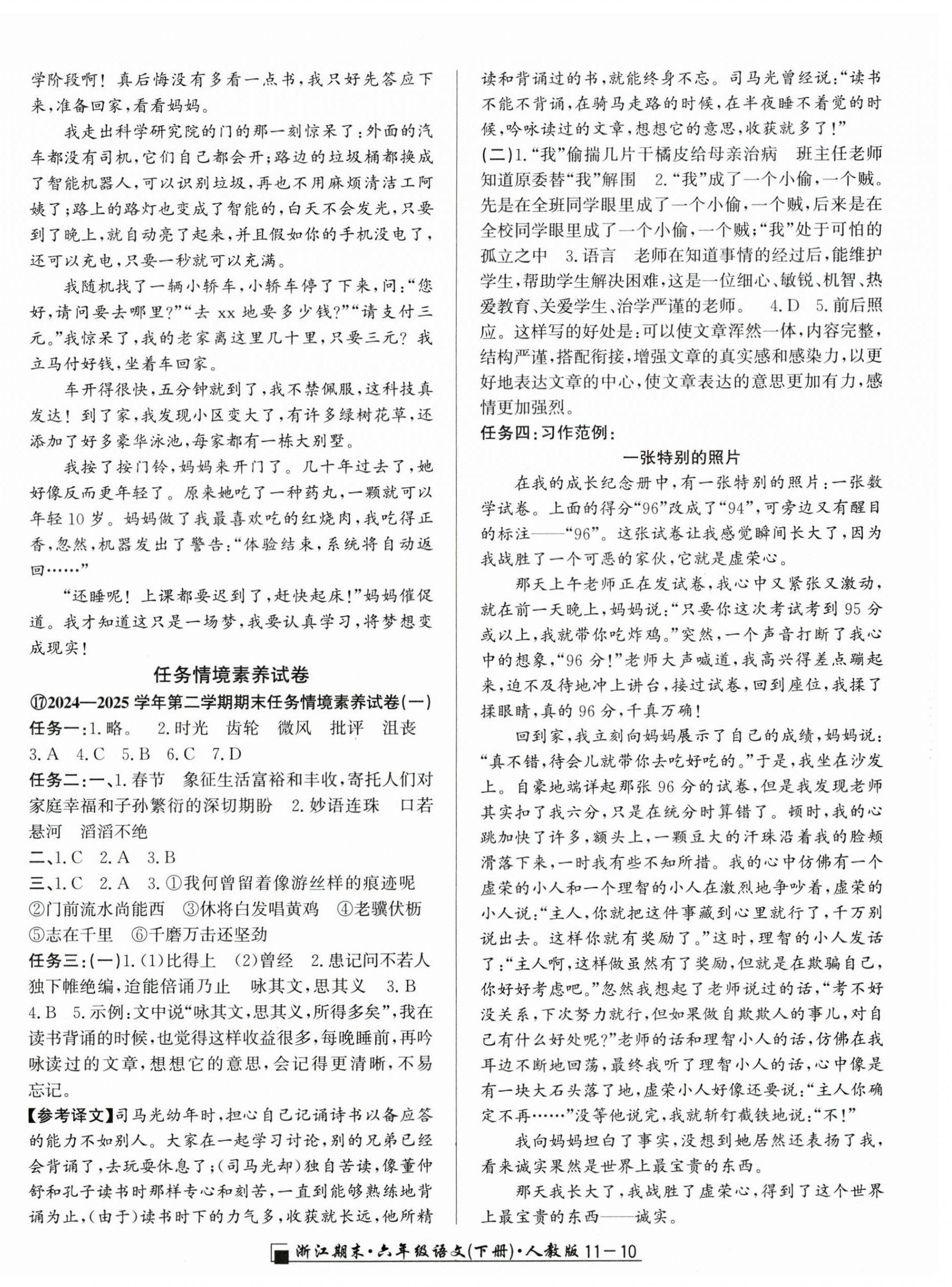 《2025年励耘书业浙江期末六年级语文下册人教版》