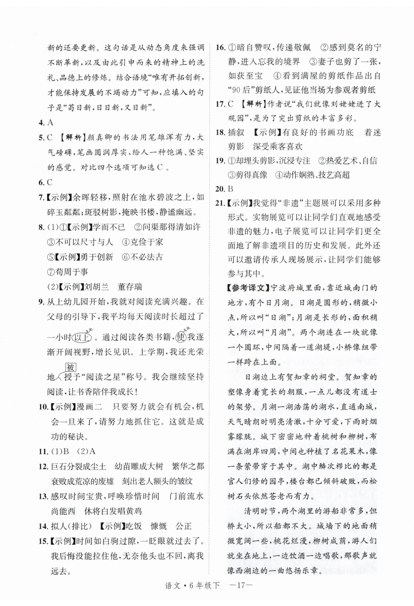 注:目前有些书本章节名称可能整理的还不是很完善,但都是按照顺序排列的,请同学们按照顺序仔细查找。练习册 2025年期末真题新卷六年级语文下册人教版浙江专版 答案主要是用来给同学们做完题方便对答案用的,请勿直接抄袭。