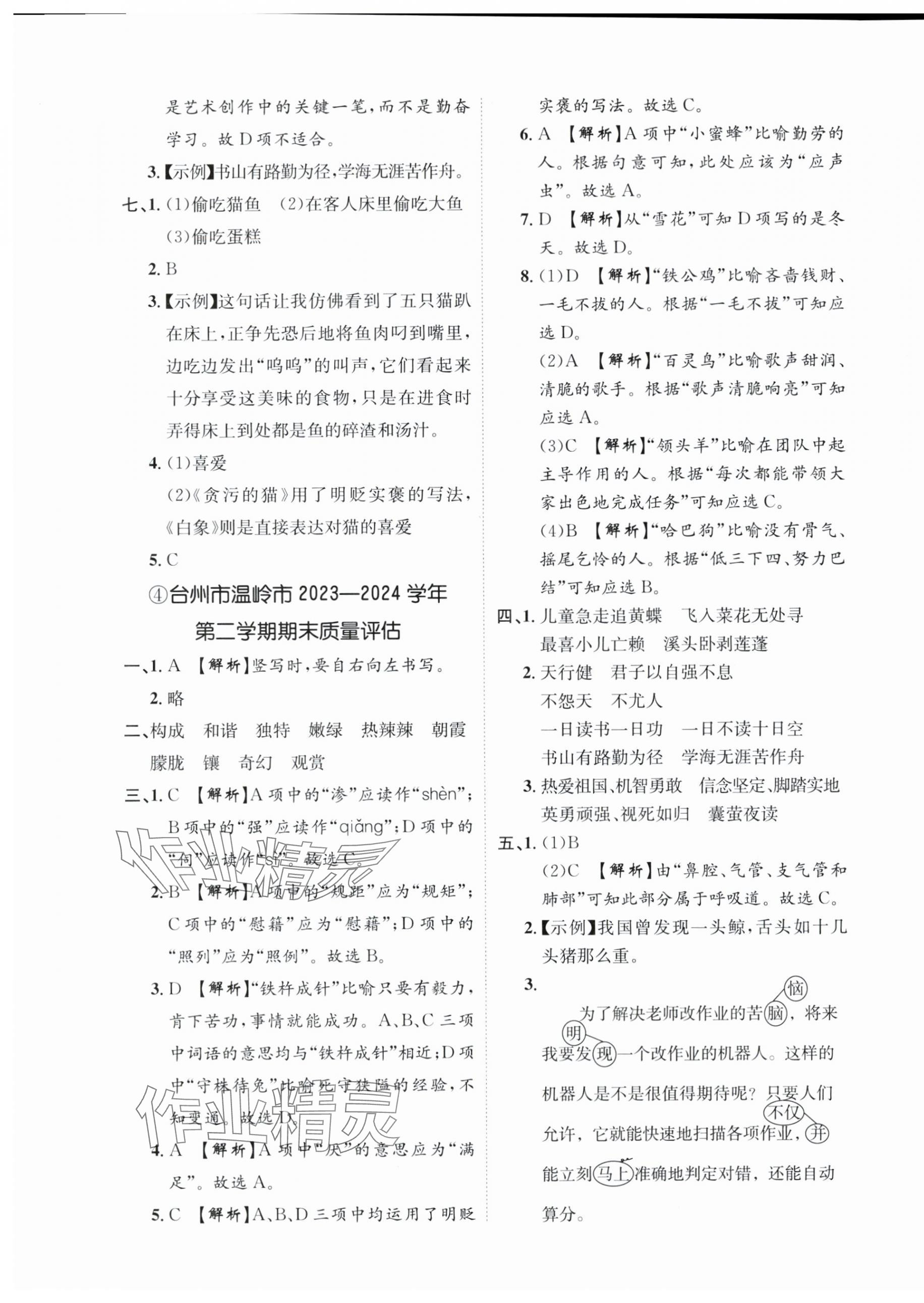 注:目前有些书本章节名称可能整理的还不是很完善,但都是按照顺序排列的,请同学们按照顺序仔细查找。练习册 2025年期末真题新卷四年级语文下册人教版浙江专版 答案主要是用来给同学们做完题方便对答案用的,请勿直接抄袭。