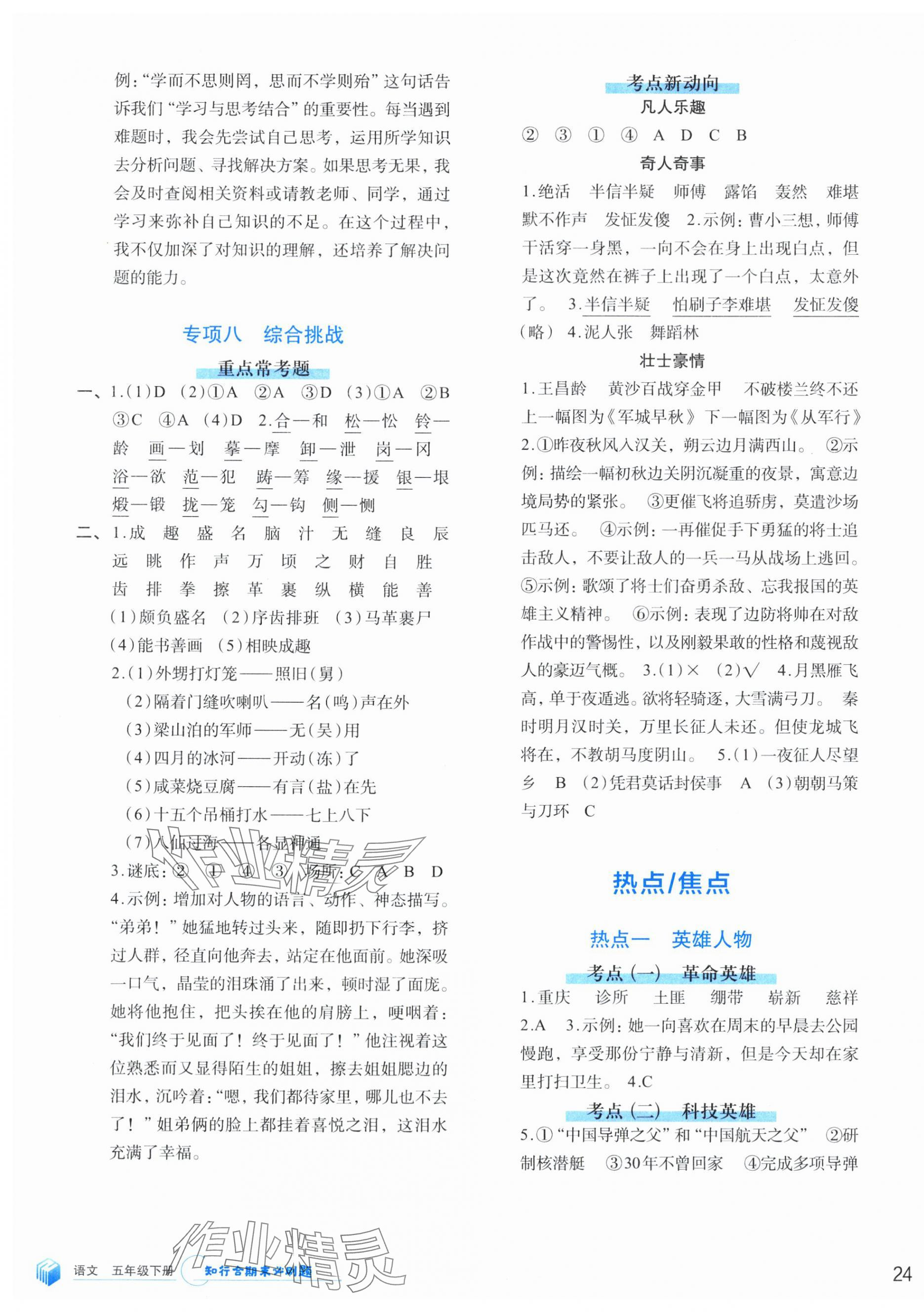 注:目前有些书本章节名称可能整理的还不是很完善,但都是按照顺序排列的,请同学们按照顺序仔细查找。练习册 2025年知行合期末必刷题五年级语文下册人教版 答案主要是用来给同学们做完题方便对答案用的,请勿直接抄袭。