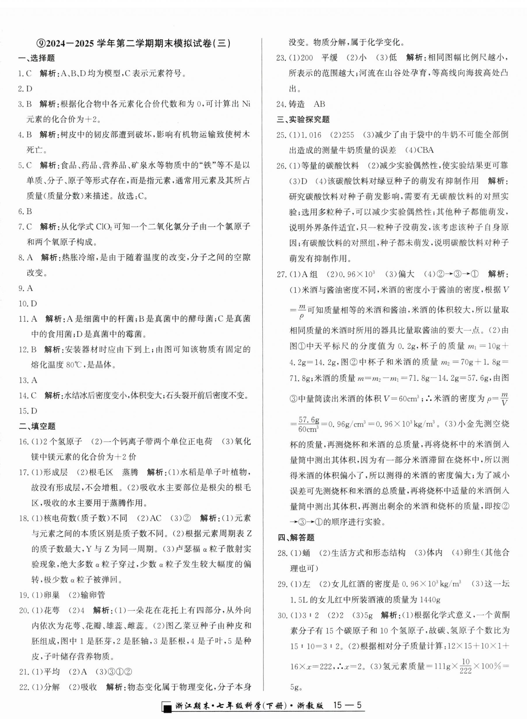2025年励耘书业浙江期末七年级科学下册浙教版