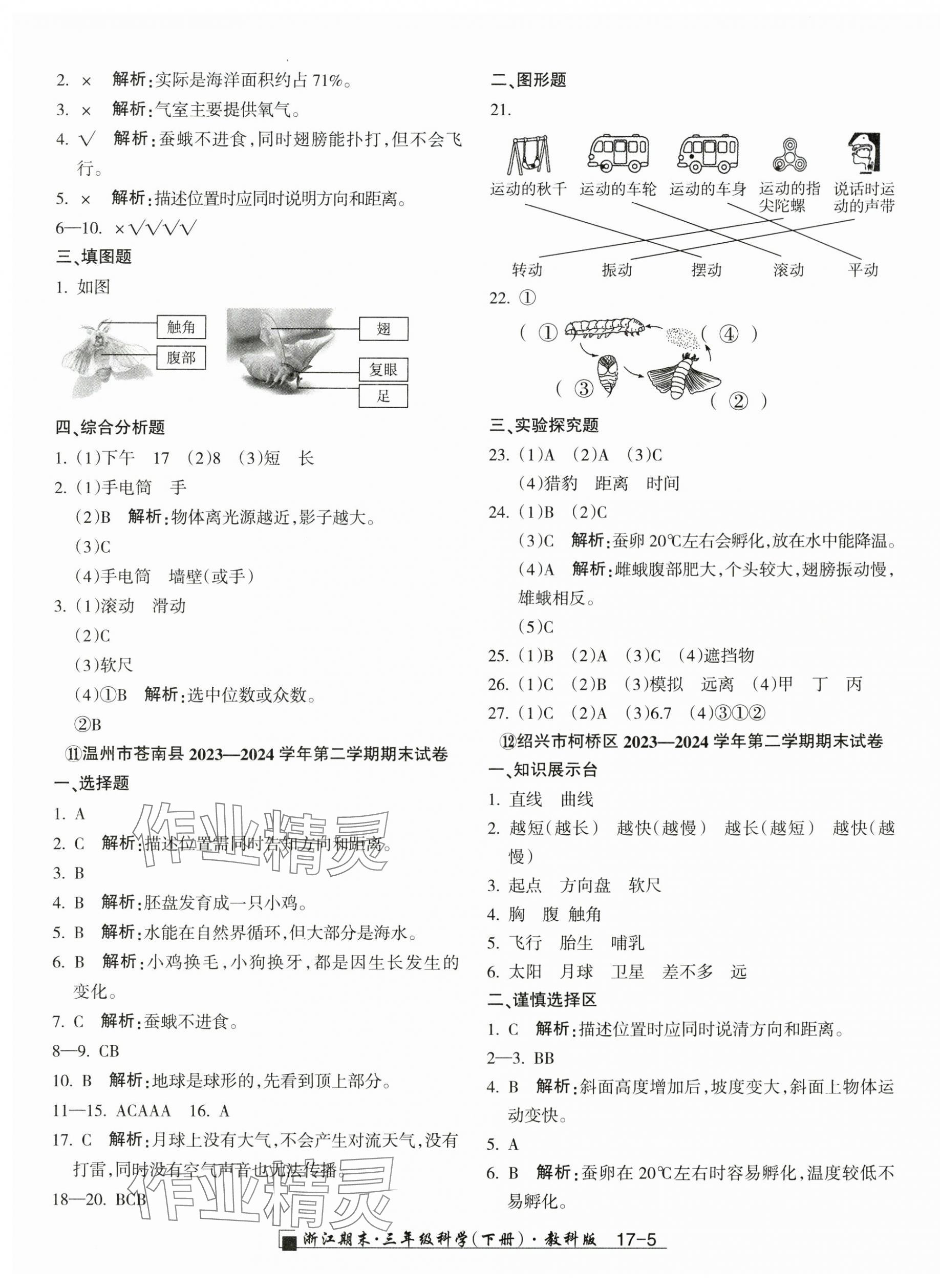 注:目前有些书本章节名称可能整理的还不是很完善,但都是按照顺序排列的,请同学们按照顺序仔细查找。练习册 2025年励耘书业浙江期末三年级科学下册教科版 答案主要是用来给同学们做完题方便对答案用的,请勿直接抄袭。