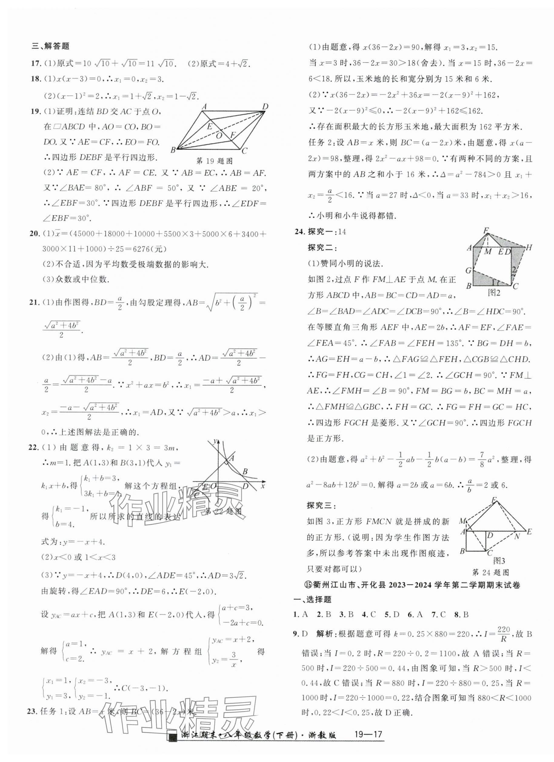 注:目前有些书本章节名称可能整理的还不是很完善,但都是按照顺序排列的,请同学们按照顺序仔细查找。练习册 2025年励耘书业浙江期末八年级数学下册浙教版 答案主要是用来给同学们做完题方便对答案用的,请勿直接抄袭。