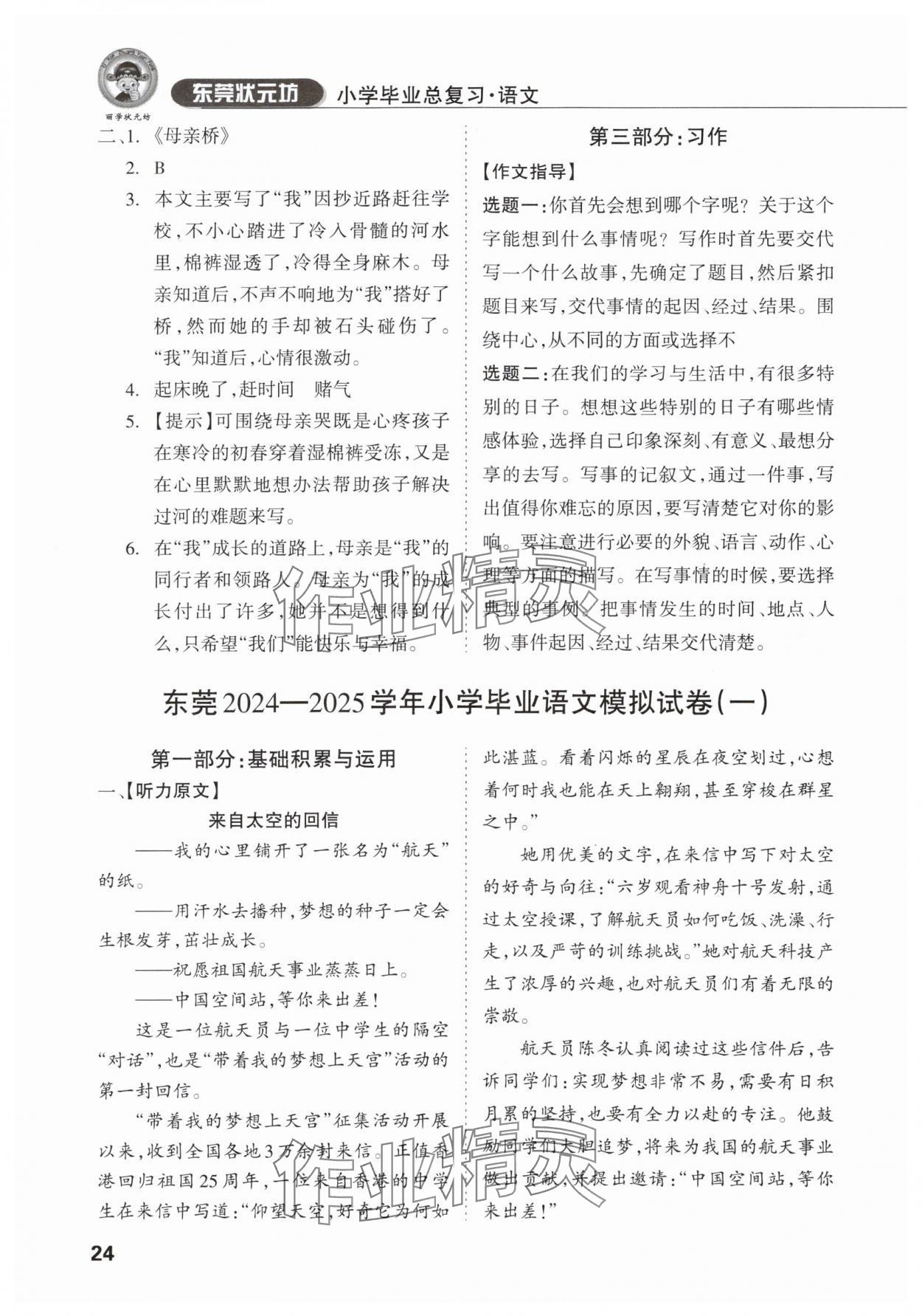 注:目前有些书本章节名称可能整理的还不是很完善,但都是按照顺序排列的,请同学们按照顺序仔细查找。练习册 2025年东莞状元坊小学毕业总复习六年级语文 答案主要是用来给同学们做完题方便对答案用的,请勿直接抄袭。