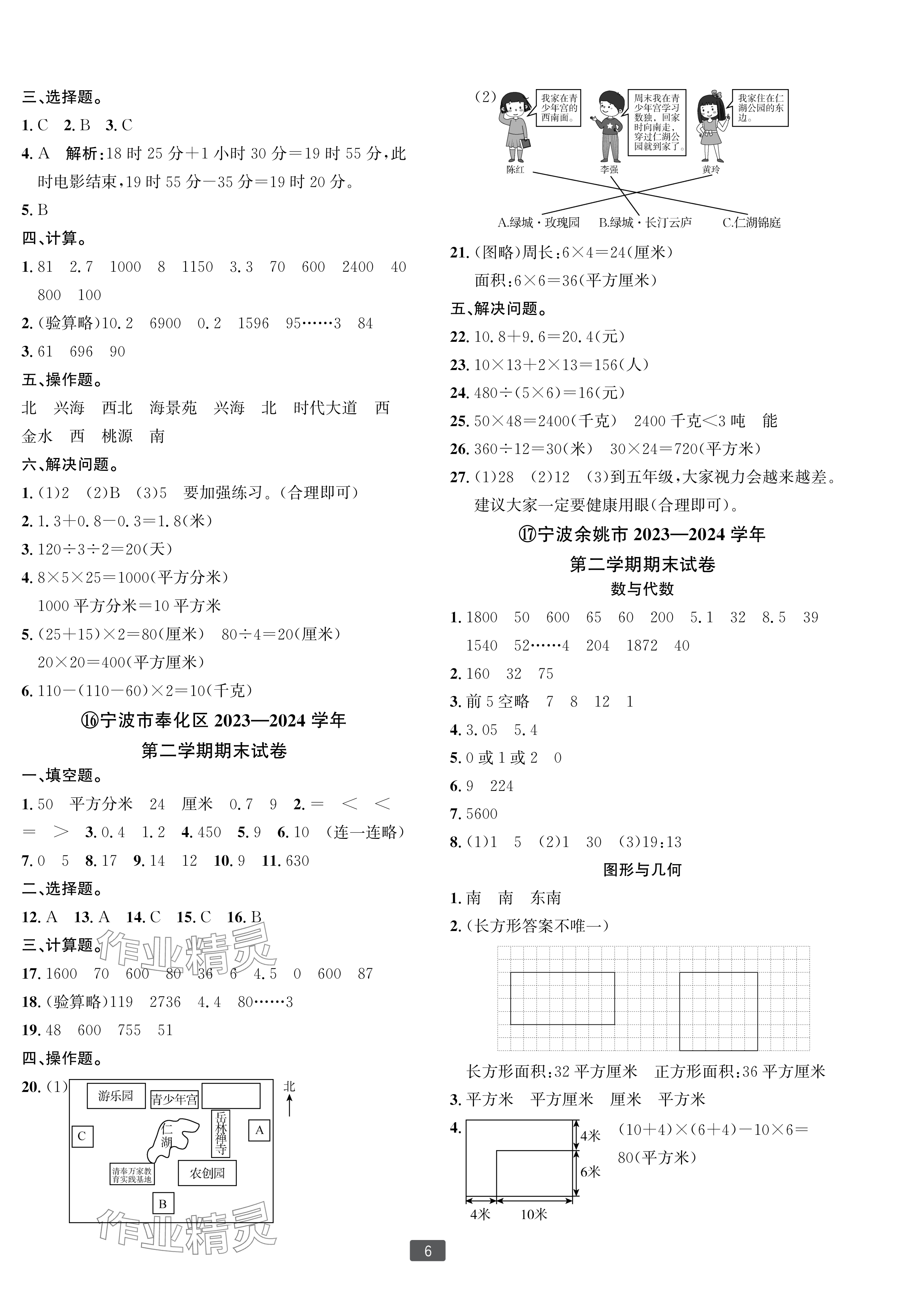 注:目前有些书本章节名称可能整理的还不是很完善,但都是按照顺序排列的,请同学们按照顺序仔细查找。练习册 2025年浙江新期末三年级数学下册人教版宁波专版 答案主要是用来给同学们做完题方便对答案用的,请勿直接抄袭。