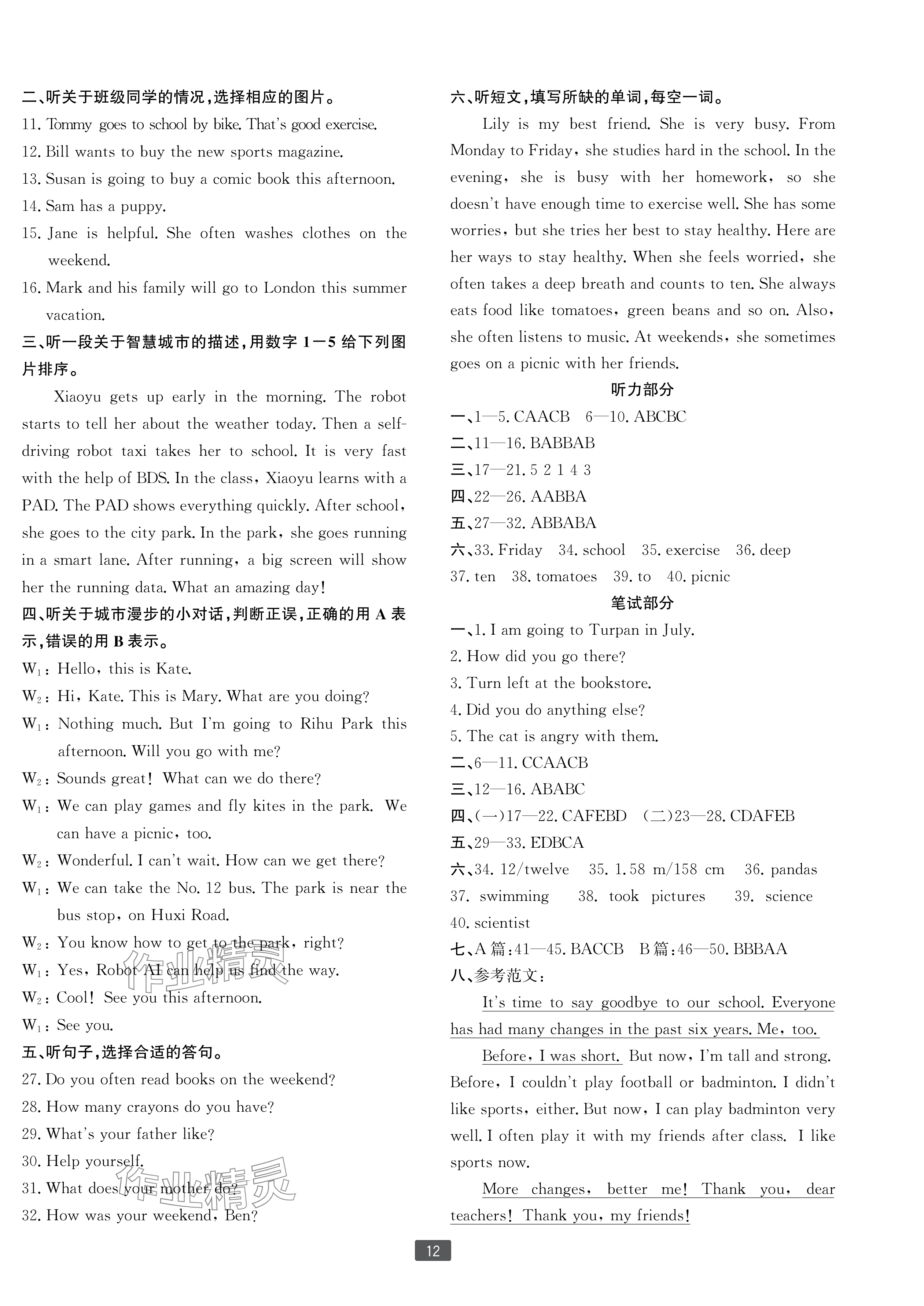 注:目前有些书本章节名称可能整理的还不是很完善,但都是按照顺序排列的,请同学们按照顺序仔细查找。练习册 2025年浙江新期末六年级英语下册人教版宁波专版 答案主要是用来给同学们做完题方便对答案用的,请勿直接抄袭。