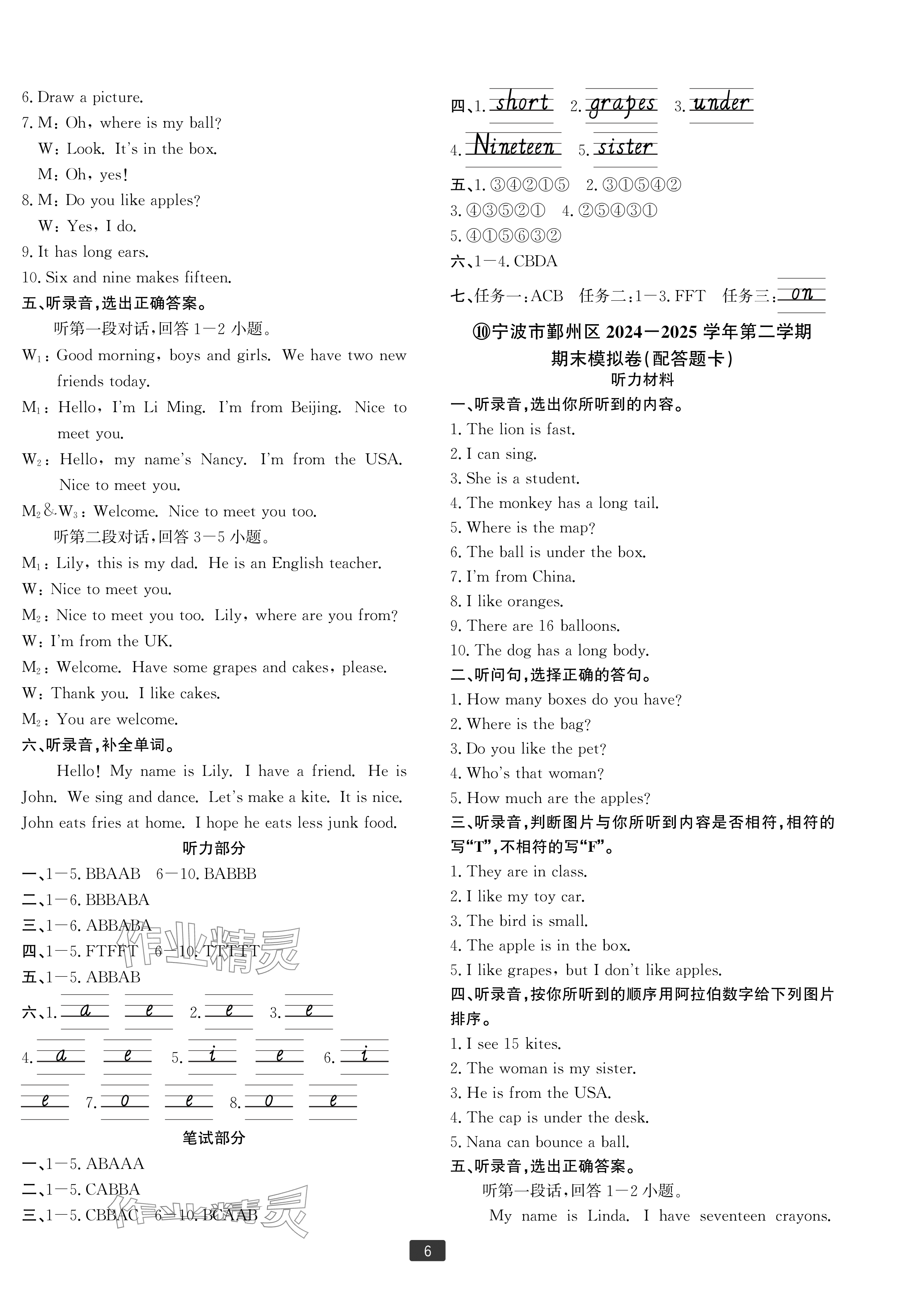 注:目前有些书本章节名称可能整理的还不是很完善,但都是按照顺序排列的,请同学们按照顺序仔细查找。练习册 2025年浙江新期末三年级英语下册人教版宁波专版 答案主要是用来给同学们做完题方便对答案用的,请勿直接抄袭。