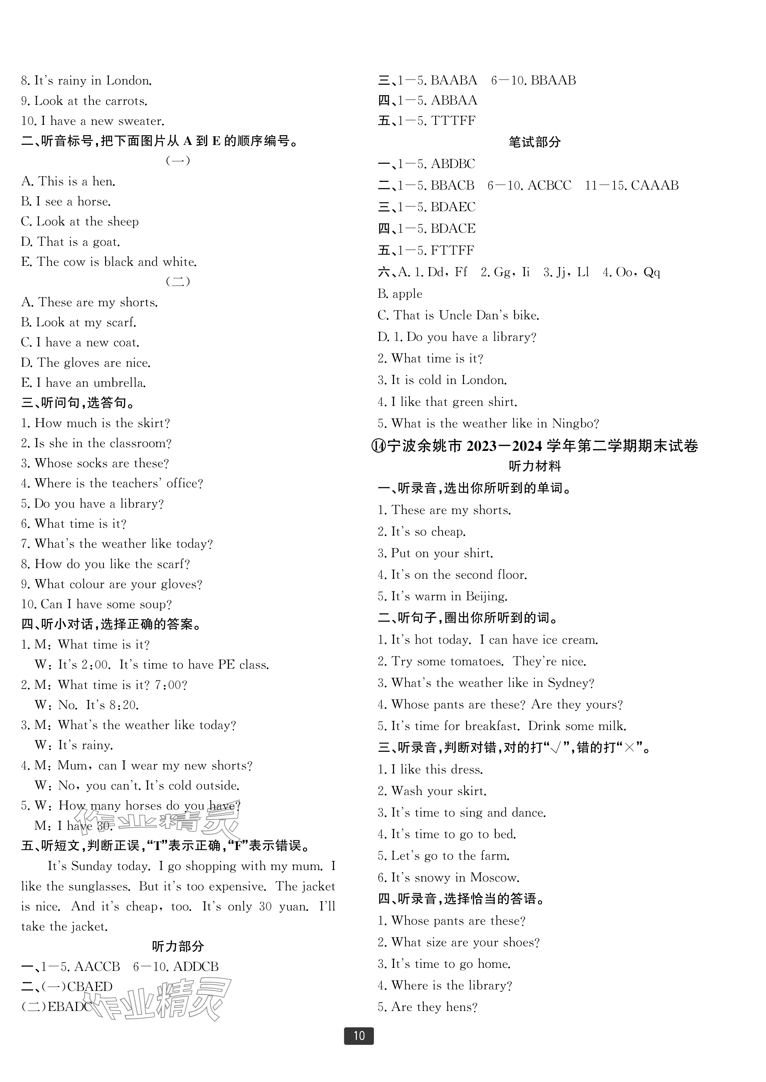 注:目前有些书本章节名称可能整理的还不是很完善,但都是按照顺序排列的,请同学们按照顺序仔细查找。练习册 2025年浙江新期末四年级英语下册人教版宁波专版 答案主要是用来给同学们做完题方便对答案用的,请勿直接抄袭。