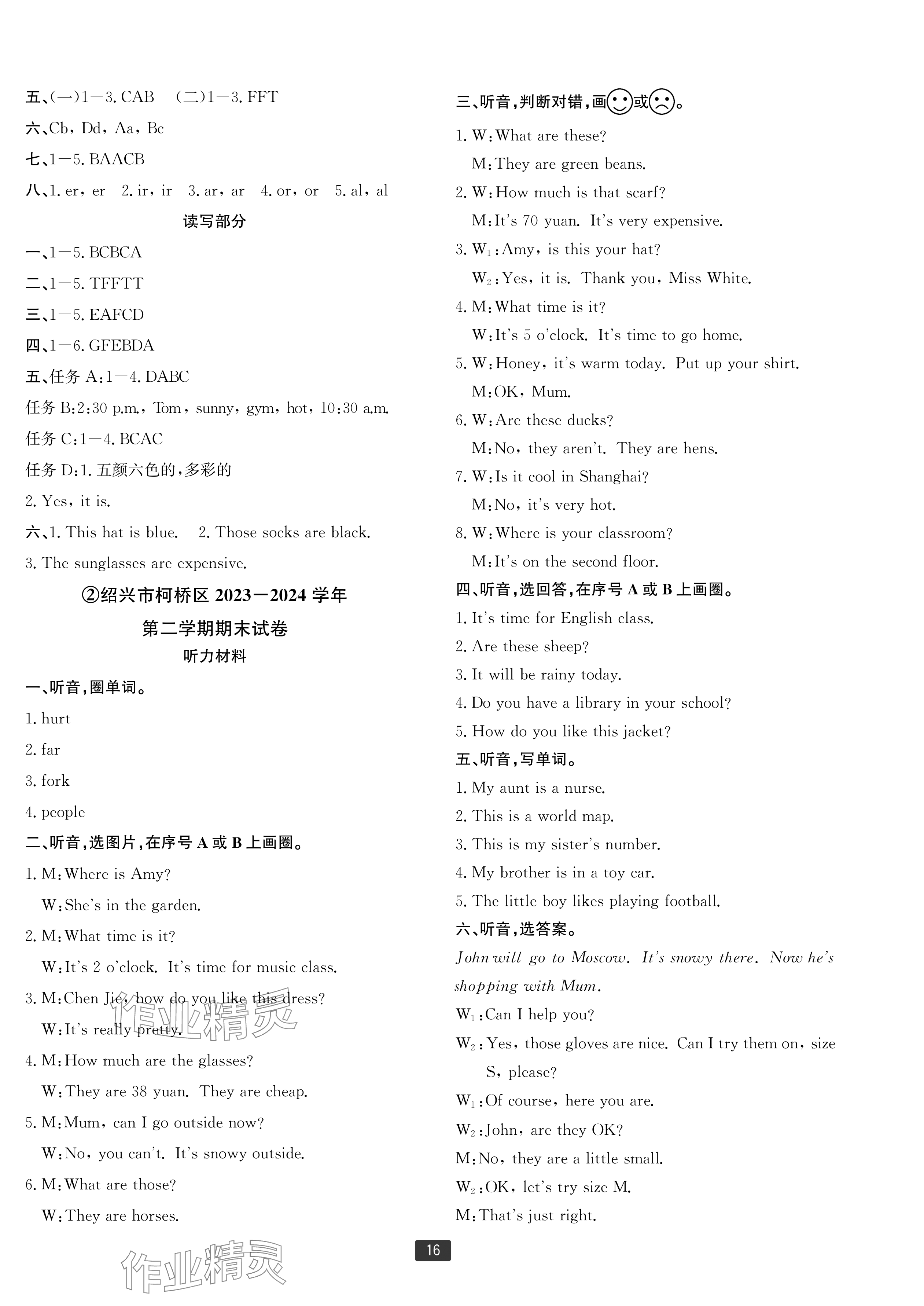 注:目前有些书本章节名称可能整理的还不是很完善,但都是按照顺序排列的,请同学们按照顺序仔细查找。练习册 2025年浙江新期末四年级英语下册人教版宁波专版 答案主要是用来给同学们做完题方便对答案用的,请勿直接抄袭。
