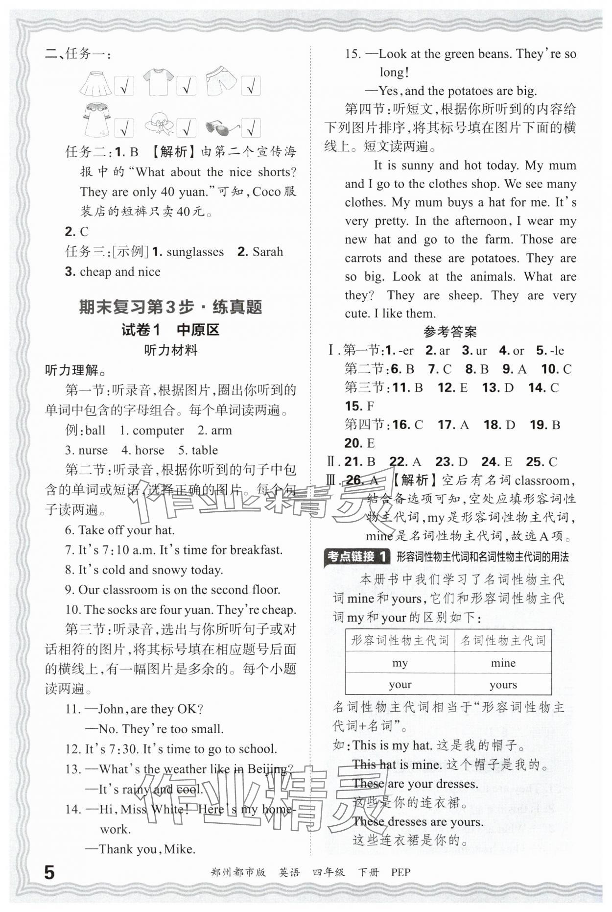 注:目前有些书本章节名称可能整理的还不是很完善,但都是按照顺序排列的,请同学们按照顺序仔细查找。练习册 2025年王朝霞期末真题精编四年级英语下册人教版郑州专版 答案主要是用来给同学们做完题方便对答案用的,请勿直接抄袭。