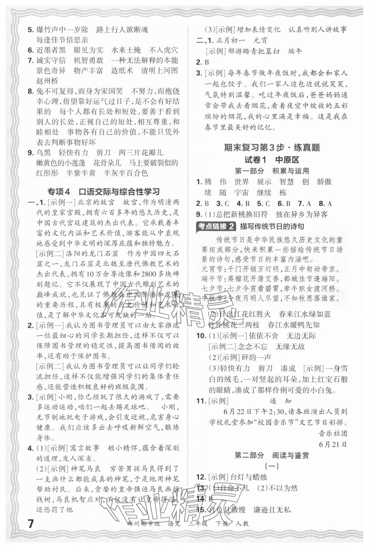 注:目前有些书本章节名称可能整理的还不是很完善,但都是按照顺序排列的,请同学们按照顺序仔细查找。练习册 2025年王朝霞期末真题精编三年级语文下册人教版郑州专版 答案主要是用来给同学们做完题方便对答案用的,请勿直接抄袭。