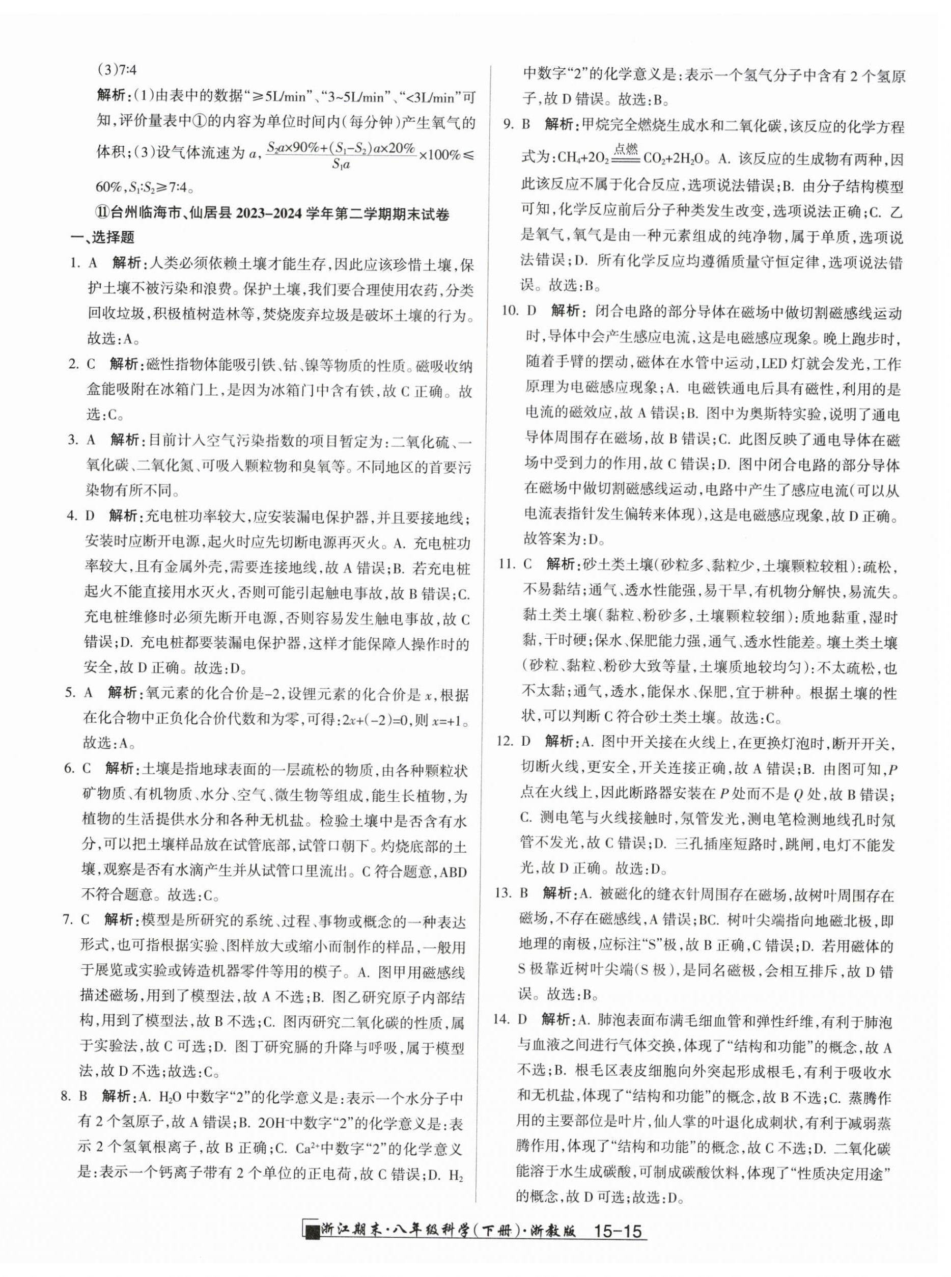 注:目前有些书本章节名称可能整理的还不是很完善,但都是按照顺序排列的,请同学们按照顺序仔细查找。练习册 2025年励耘书业浙江期末八年级科学下册浙教版 答案主要是用来给同学们做完题方便对答案用的,请勿直接抄袭。