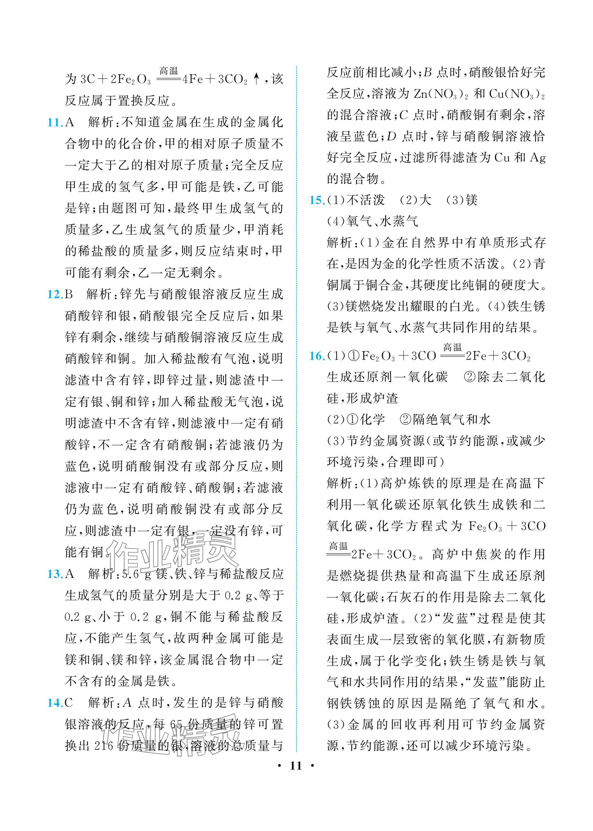 2025年人教金学典同步解析与测评九年级化学下册人教版重庆专版 参考答案第11页