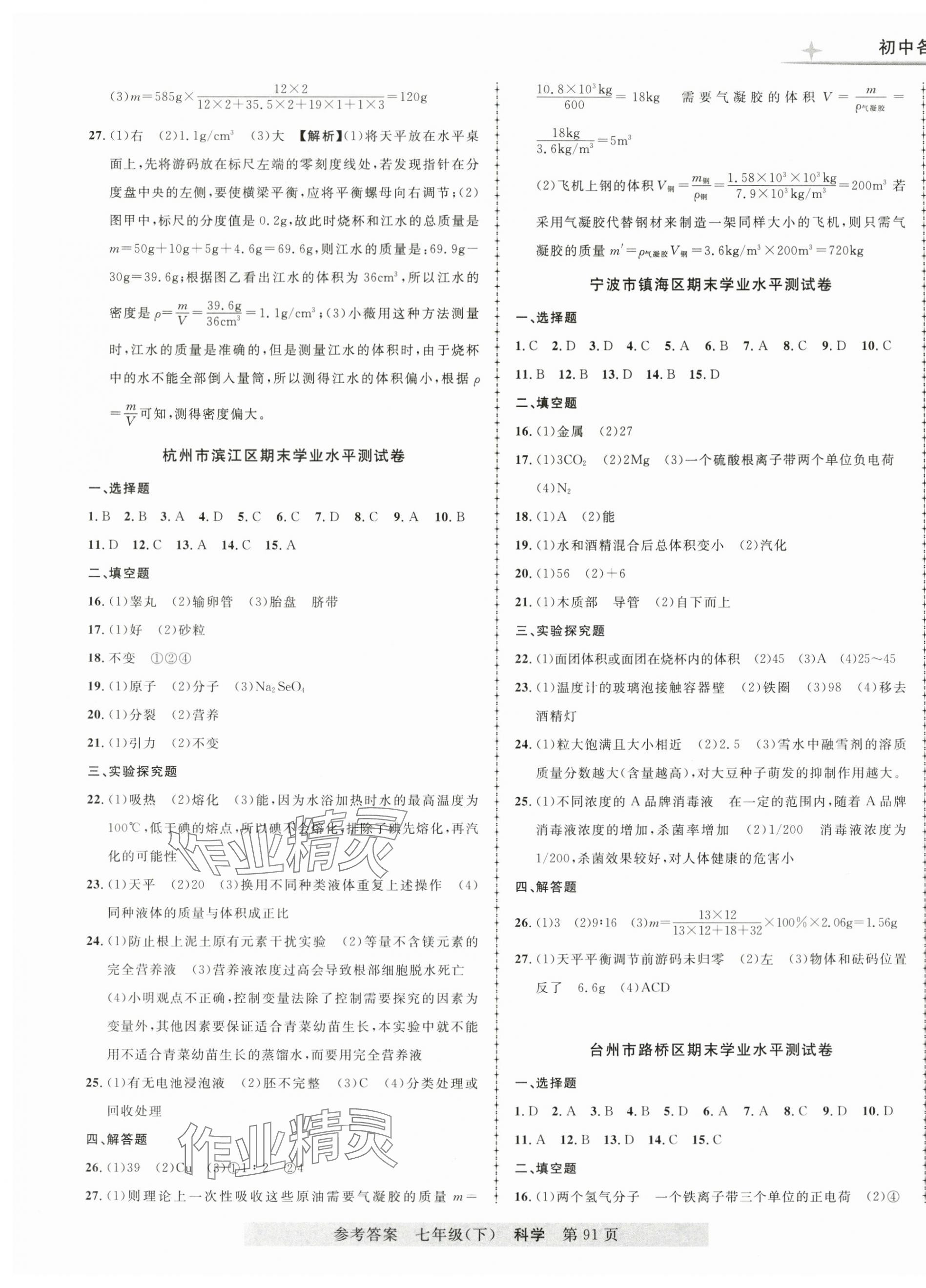 注:目前有些书本章节名称可能整理的还不是很完善,但都是按照顺序排列的,请同学们按照顺序仔细查找。练习册 2025年各地期末测试大考卷七年级科学下册浙教版浙江专版 答案主要是用来给同学们做完题方便对答案用的,请勿直接抄袭。