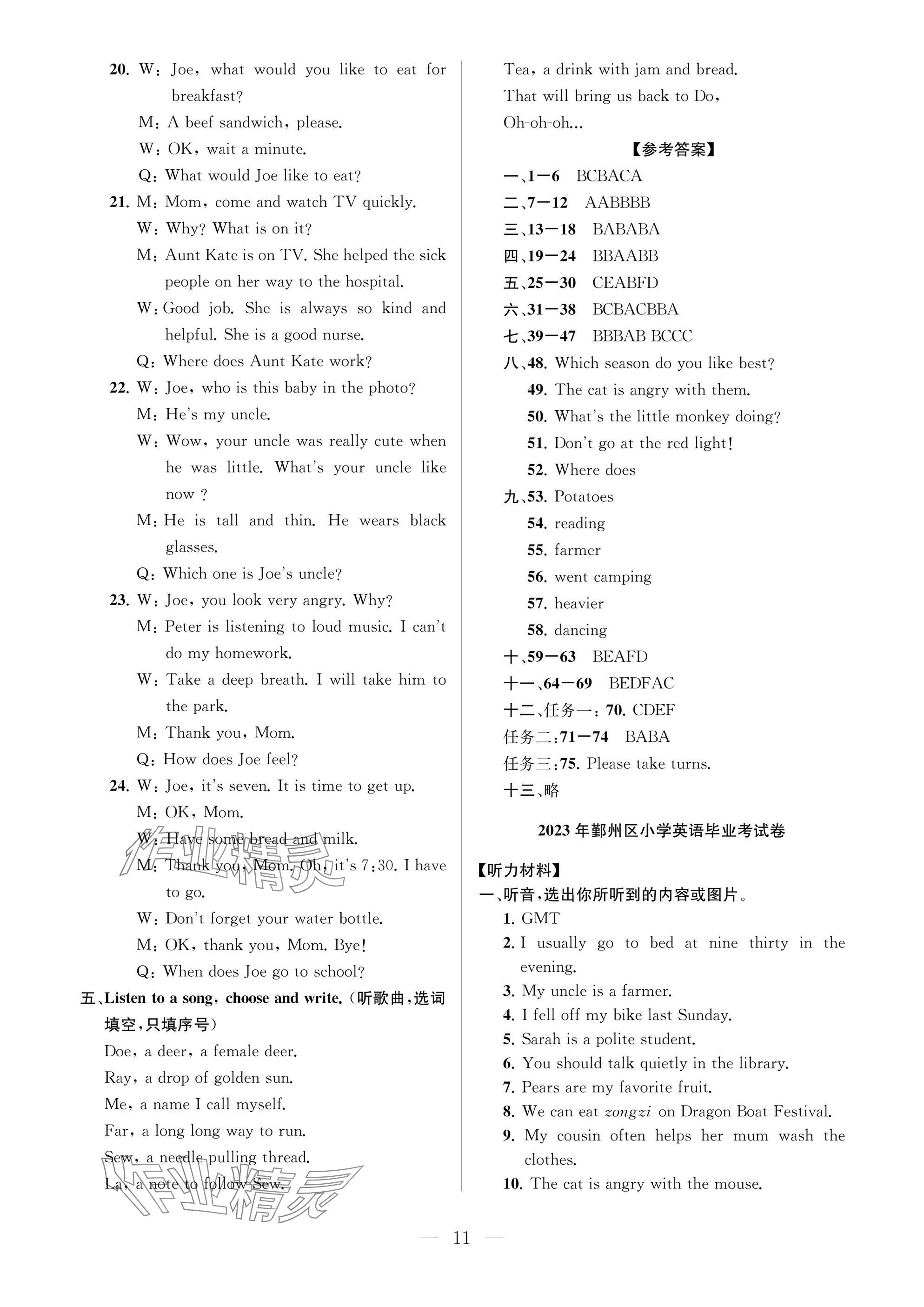 注:目前有些书本章节名称可能整理的还不是很完善,但都是按照顺序排列的,请同学们按照顺序仔细查找。练习册 2025年小学毕业升学真题试卷汇编英语宁波专版 答案主要是用来给同学们做完题方便对答案用的,请勿直接抄袭。