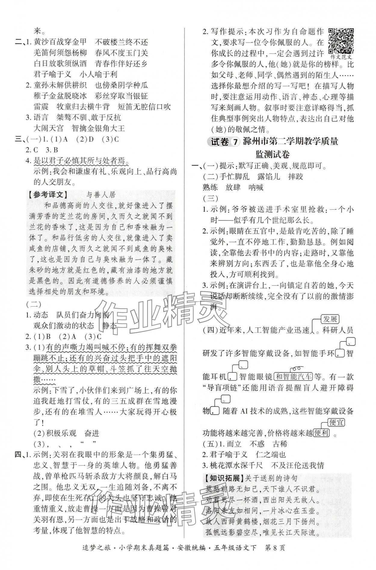2025年追梦之旅小学期末真题篇五年级语文下册人教版安徽专版