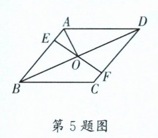 5. (锦江区二诊)如图,在菱形 $ABCD$ 中,点 $E$,$F$ 分别在 $AB$,$CD$ 上,且 $AE = CF$,连接 $EF$ 交 $BD$ 于点 $O$,连接 $AO$. 若 $\angle DBC = 25^{\circ}$,则 $\angle OAD$ 的度数为 (