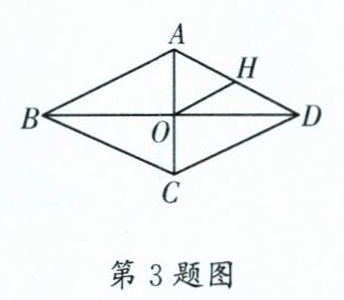 3. (高新区一诊)如图,在菱形 $ABCD$ 中,对角线 $AC$,$BD$ 相交于点 $O$,$H$ 为 $AD$ 边的中点,菱形 $ABCD$ 的周长为 $28$,则 $OH$ 的长等于 (