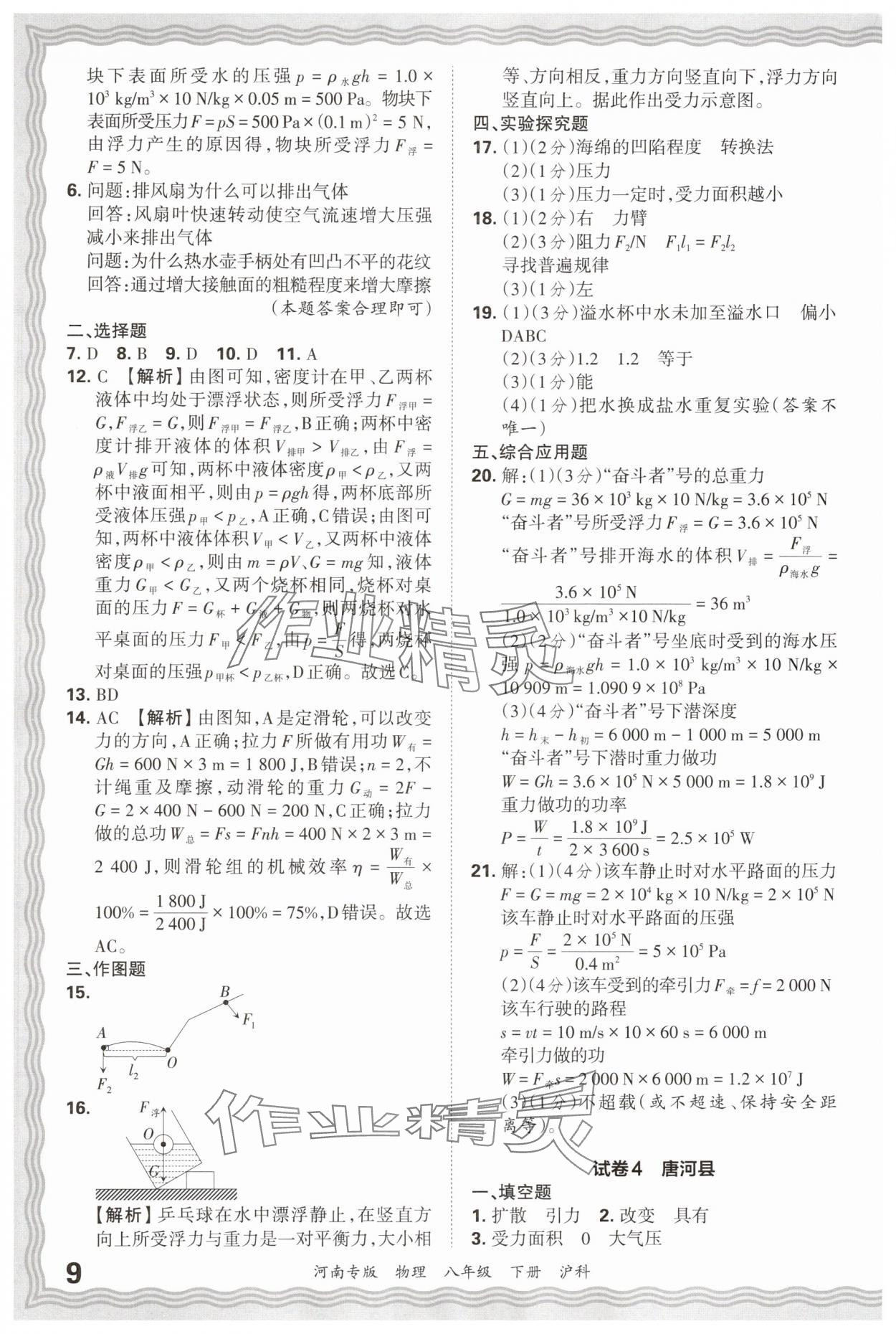 注:目前有些书本章节名称可能整理的还不是很完善,但都是按照顺序排列的,请同学们按照顺序仔细查找。练习册 2025年王朝霞各地期末试卷精选八年级物理下册沪科版河南专版 答案主要是用来给同学们做完题方便对答案用的,请勿直接抄袭。