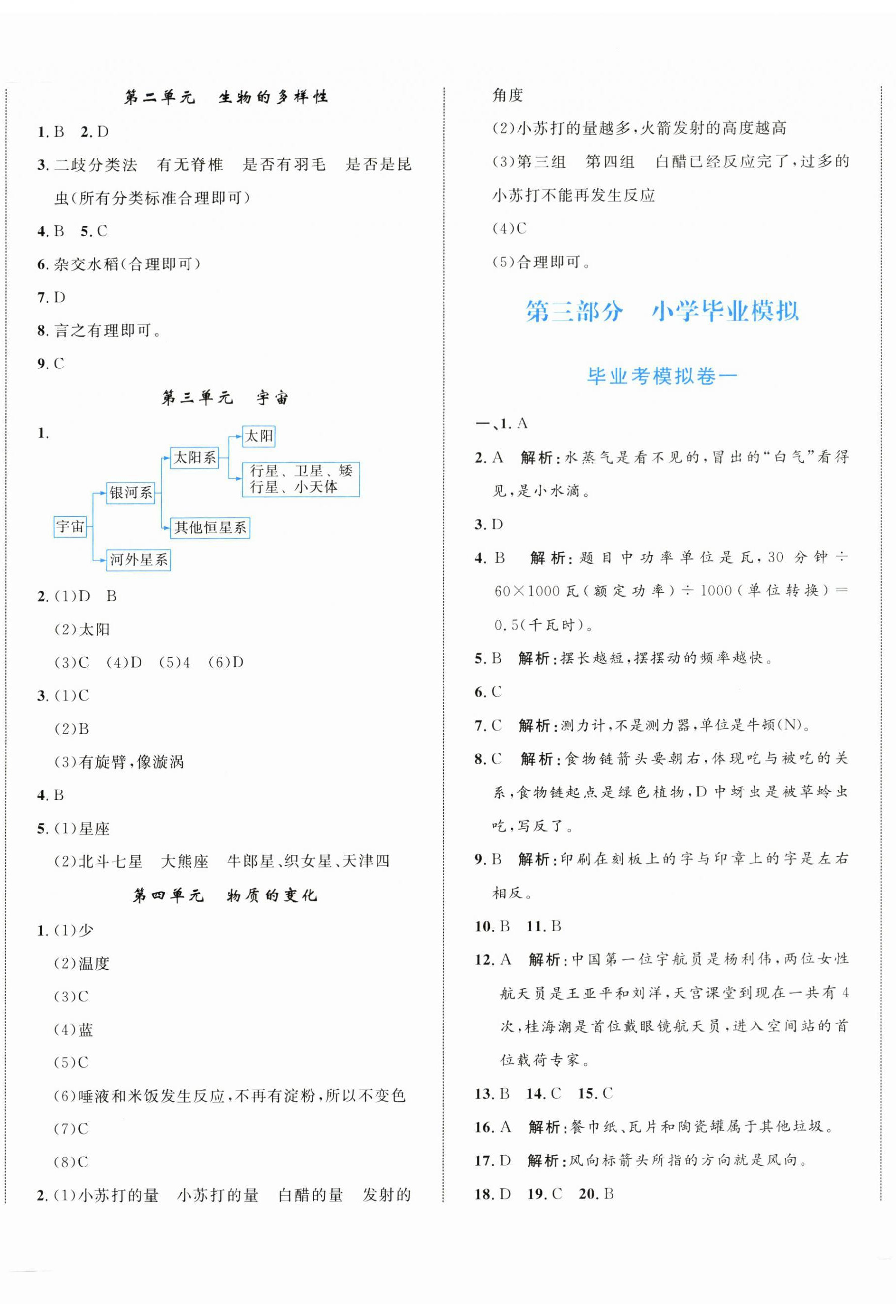 注:目前有些书本章节名称可能整理的还不是很完善,但都是按照顺序排列的,请同学们按照顺序仔细查找。练习册 2025年浙点通提优卷六年级科学下册教科版 答案主要是用来给同学们做完题方便对答案用的,请勿直接抄袭。