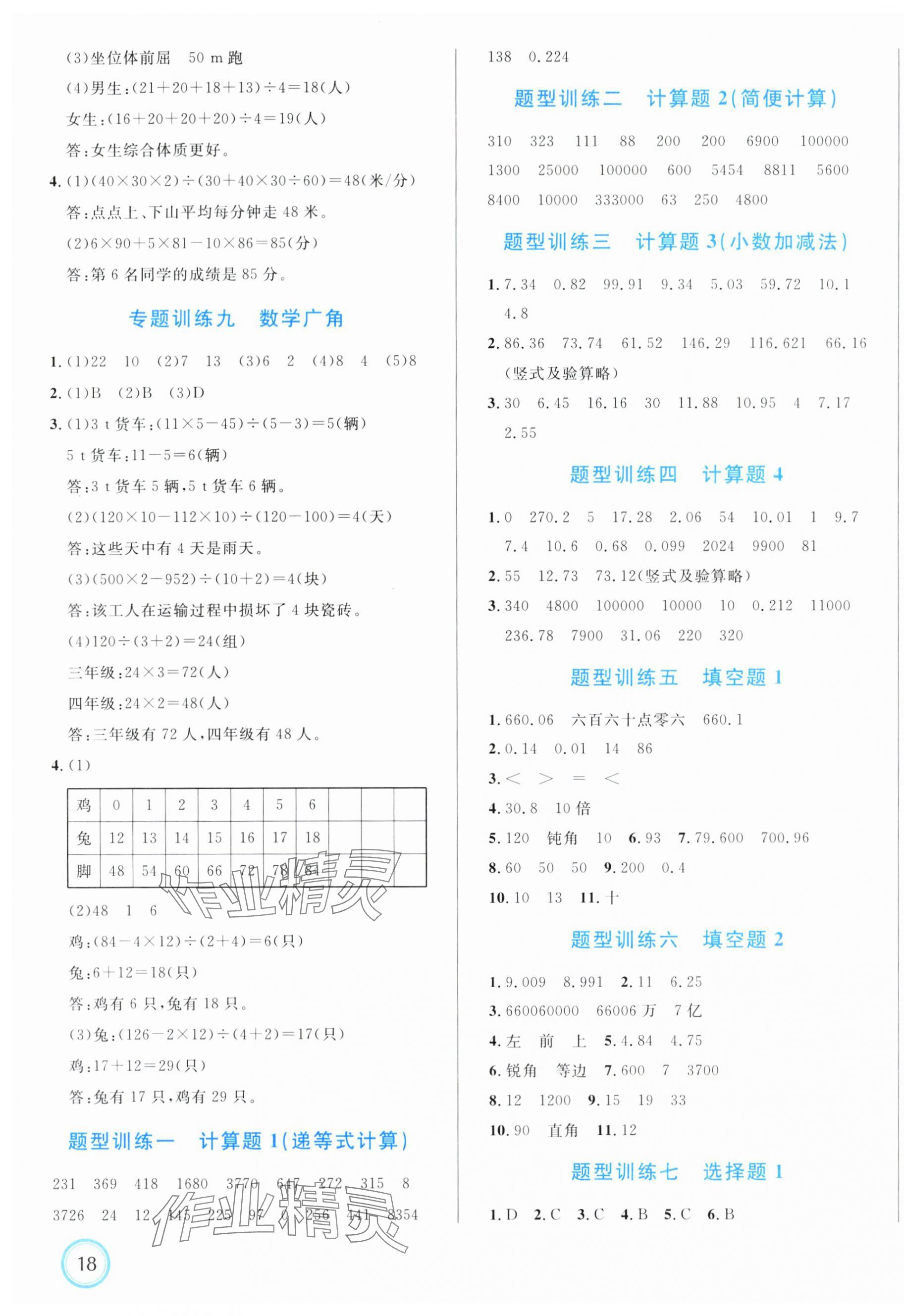 注:目前有些书本章节名称可能整理的还不是很完善,但都是按照顺序排列的,请同学们按照顺序仔细查找。练习册 2025年浙点通提优卷四年级数学下册人教版 答案主要是用来给同学们做完题方便对答案用的,请勿直接抄袭。