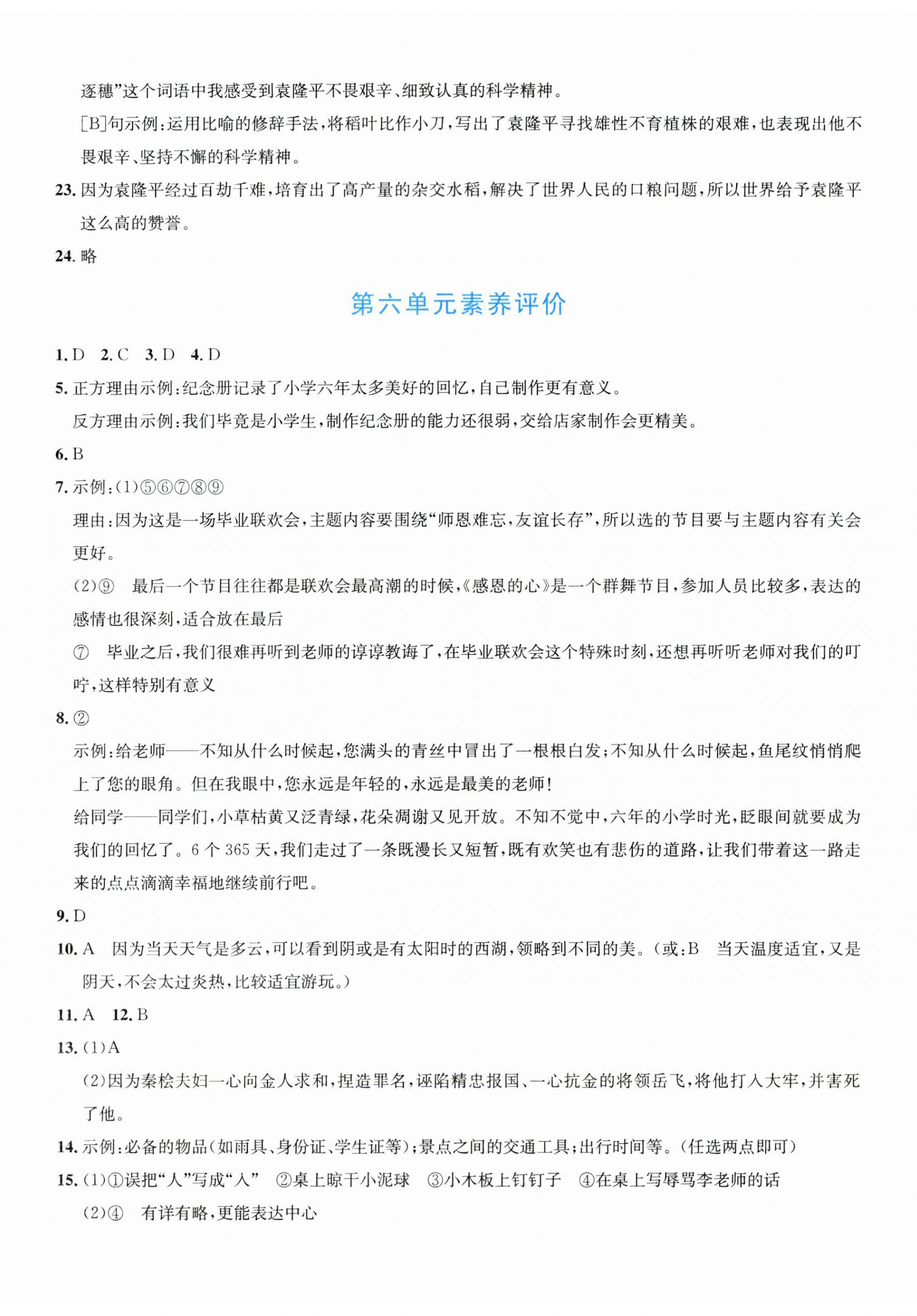 注:目前有些书本章节名称可能整理的还不是很完善,但都是按照顺序排列的,请同学们按照顺序仔细查找。练习册 2025年浙点通提优卷六年级语文下册人教版 答案主要是用来给同学们做完题方便对答案用的,请勿直接抄袭。