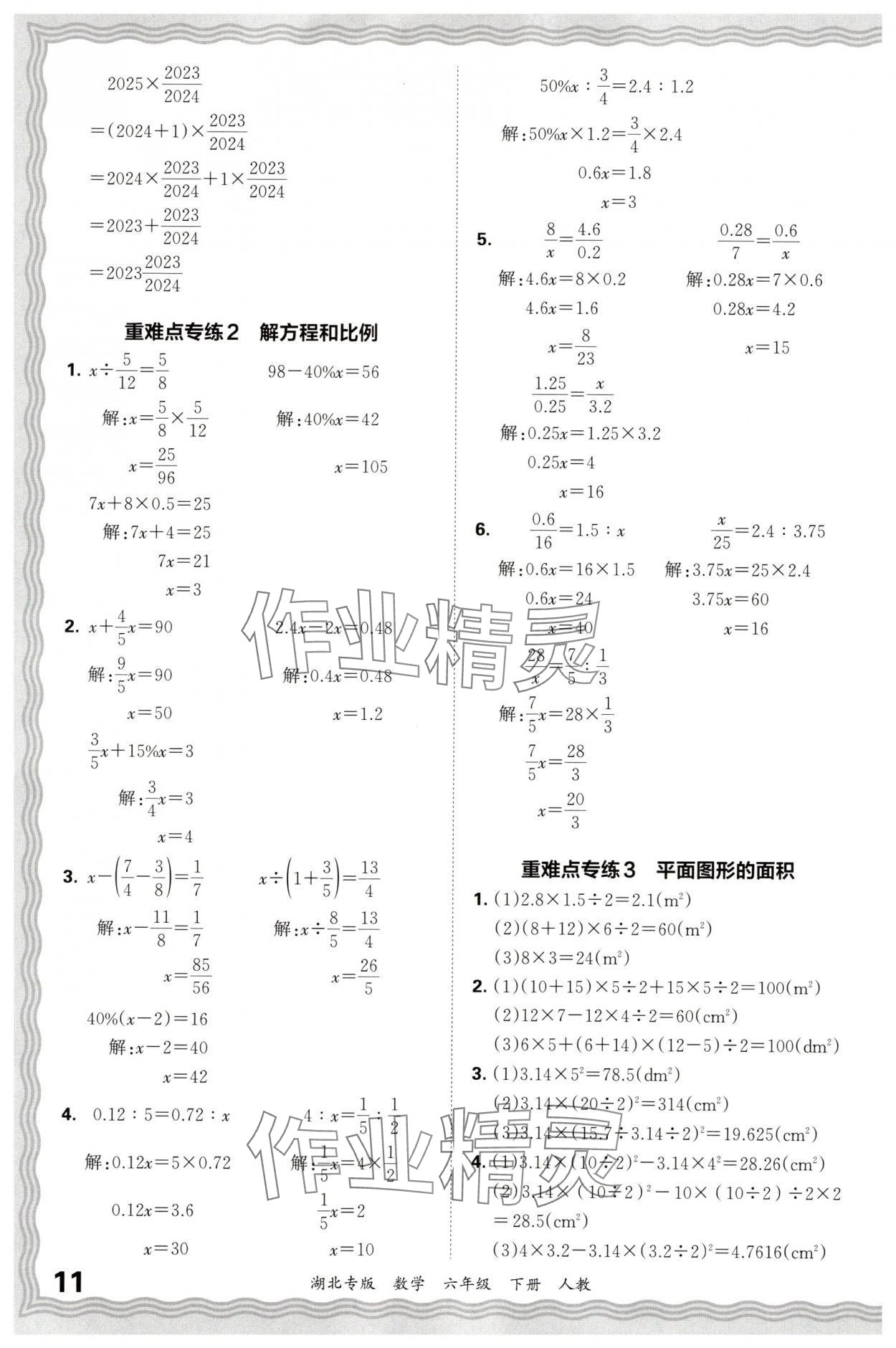 2025年王朝霞各地期末试卷精选六年级数学下册人教版湖北专版