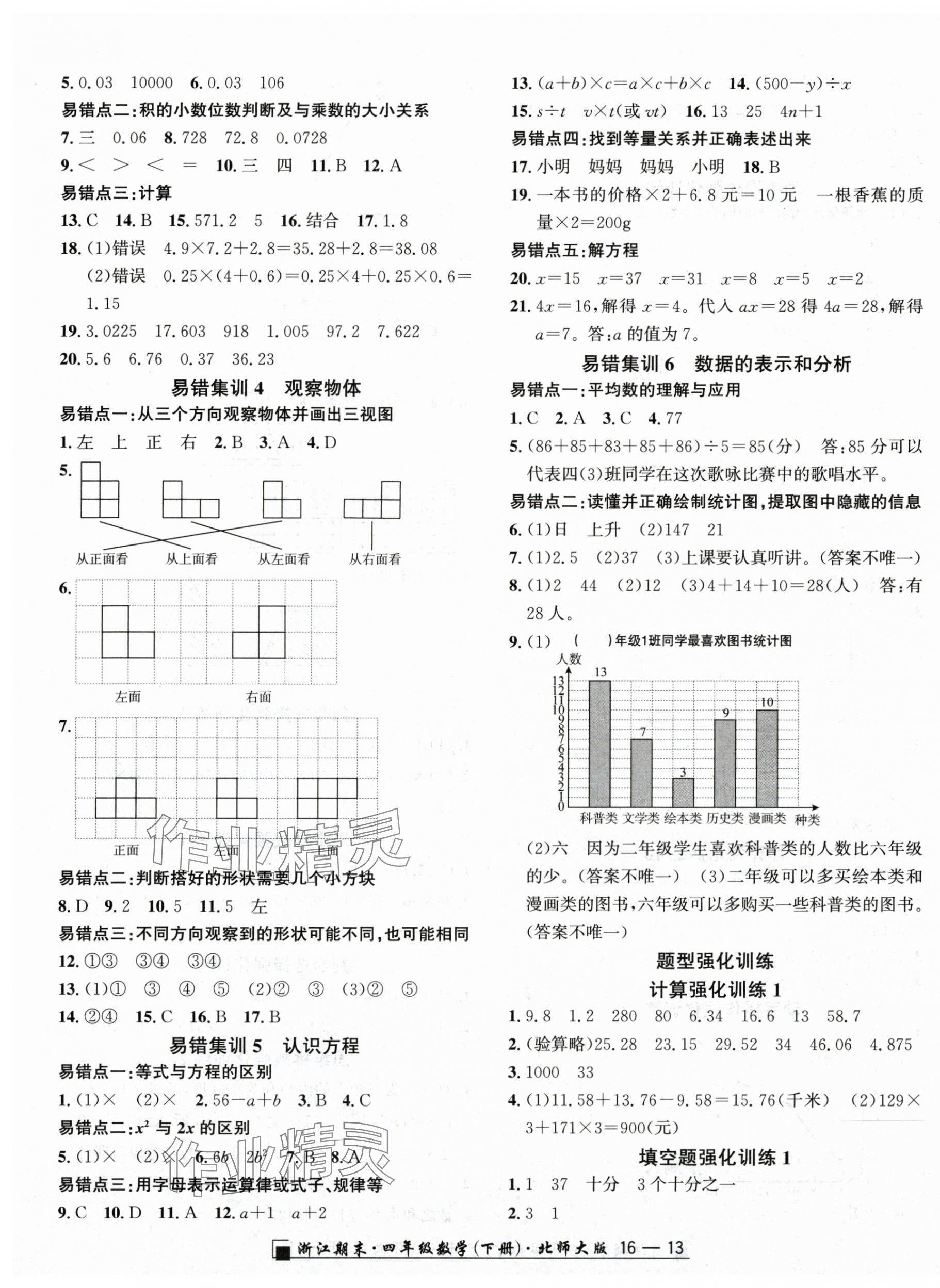 注:目前有些书本章节名称可能整理的还不是很完善,但都是按照顺序排列的,请同学们按照顺序仔细查找。练习册 2025年励耘书业浙江期末四年级数学下册北师大版 答案主要是用来给同学们做完题方便对答案用的,请勿直接抄袭。