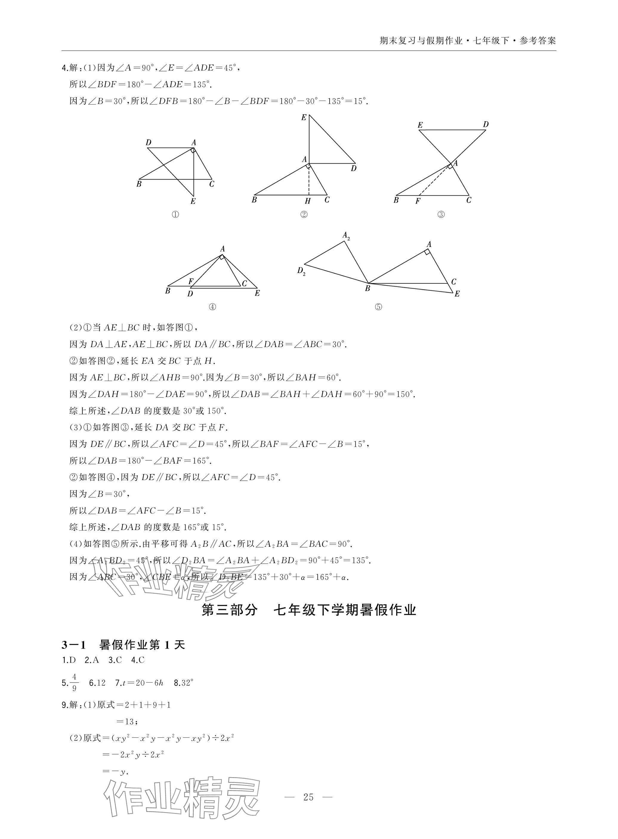 注:目前有些书本章节名称可能整理的还不是很完善,但都是按照顺序排列的,请同学们按照顺序仔细查找。练习册 2025年智能作业与测评期末复习与假期作业七年级数学下册北师大版 答案主要是用来给同学们做完题方便对答案用的,请勿直接抄袭。