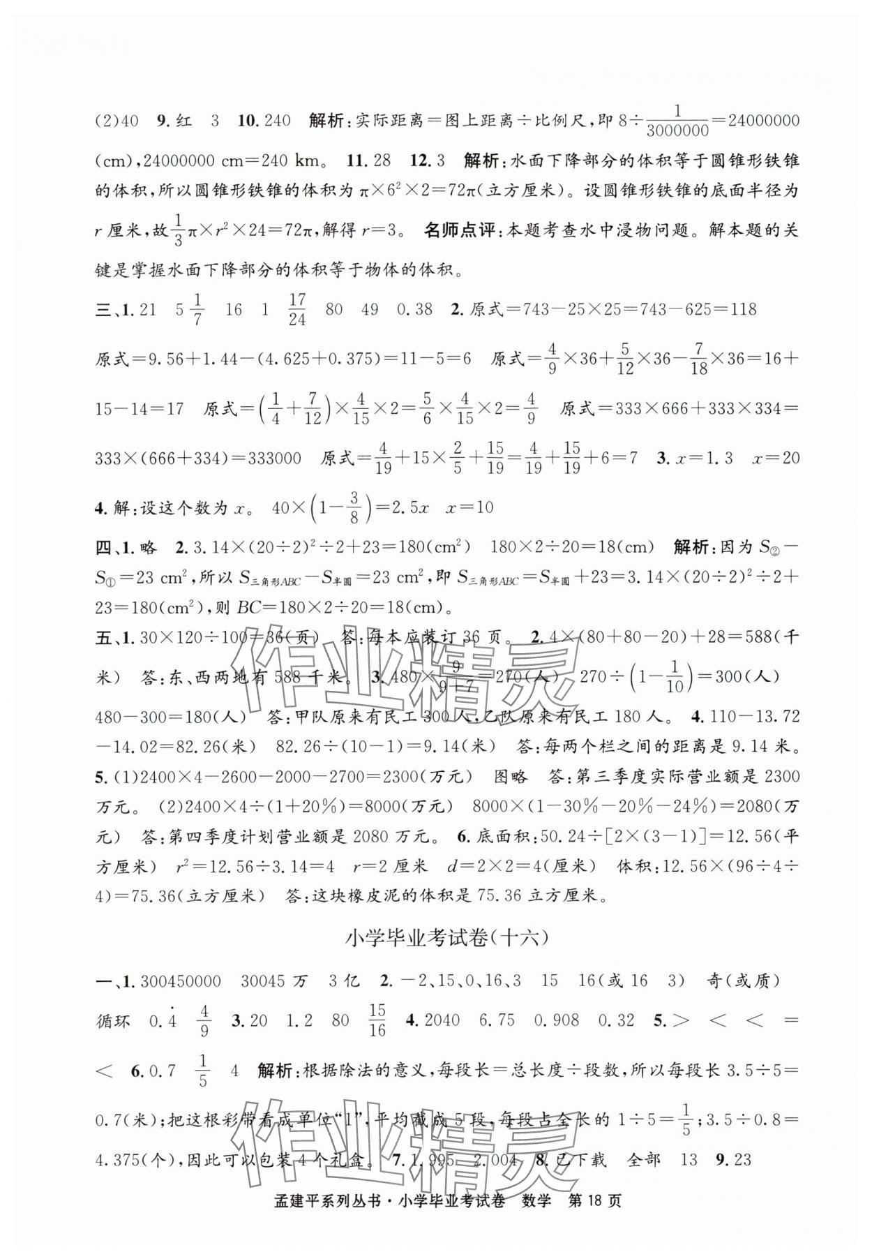 注:目前有些书本章节名称可能整理的还不是很完善,但都是按照顺序排列的,请同学们按照顺序仔细查找。练习册 2025年孟建平小学数学毕业考试卷 答案主要是用来给同学们做完题方便对答案用的,请勿直接抄袭。