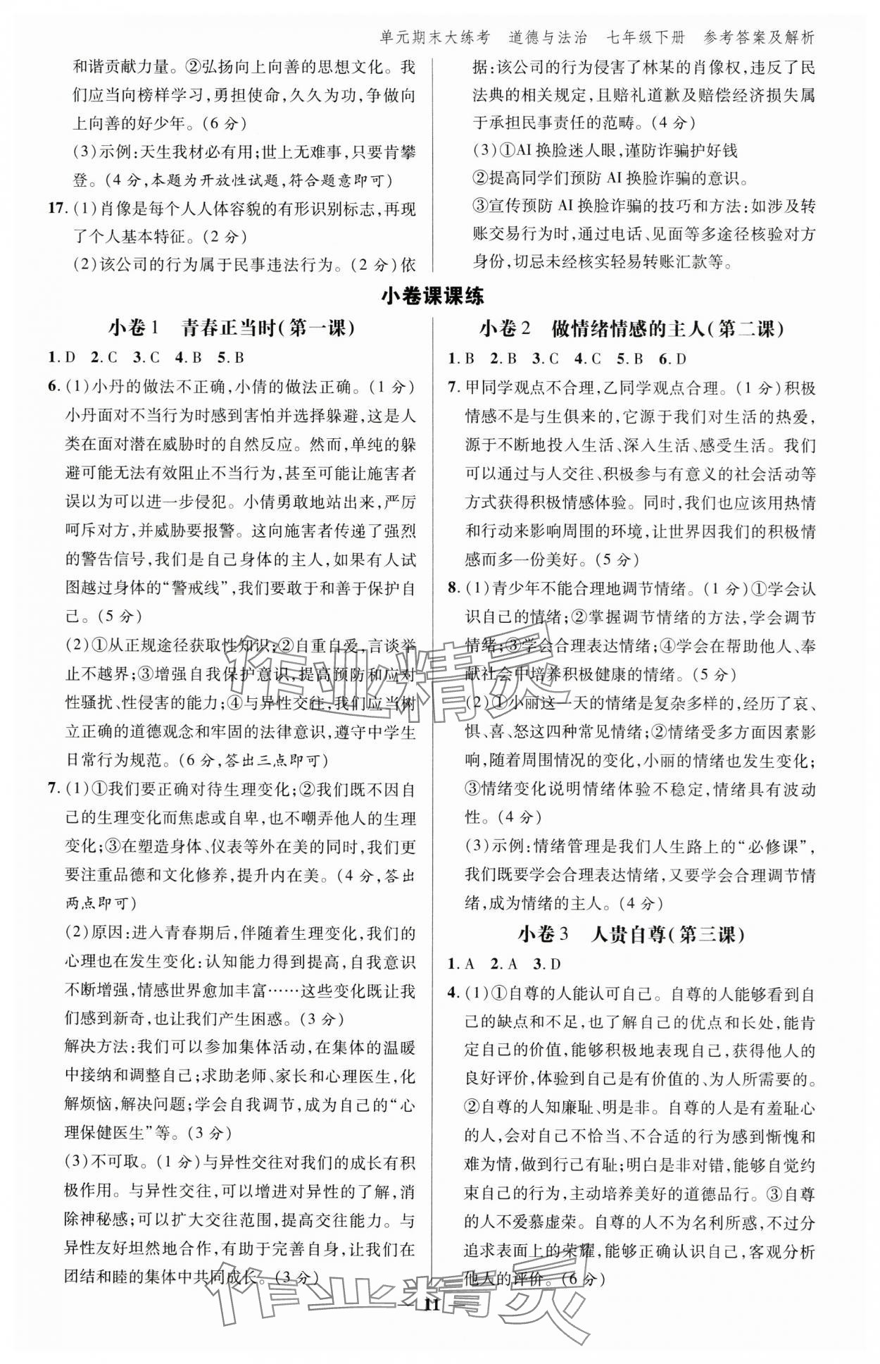 注:目前有些书本章节名称可能整理的还不是很完善,但都是按照顺序排列的,请同学们按照顺序仔细查找。练习册 2025年练客单元期末大练考七年级道德与法治下册人教版安徽专版 答案主要是用来给同学们做完题方便对答案用的,请勿直接抄袭。