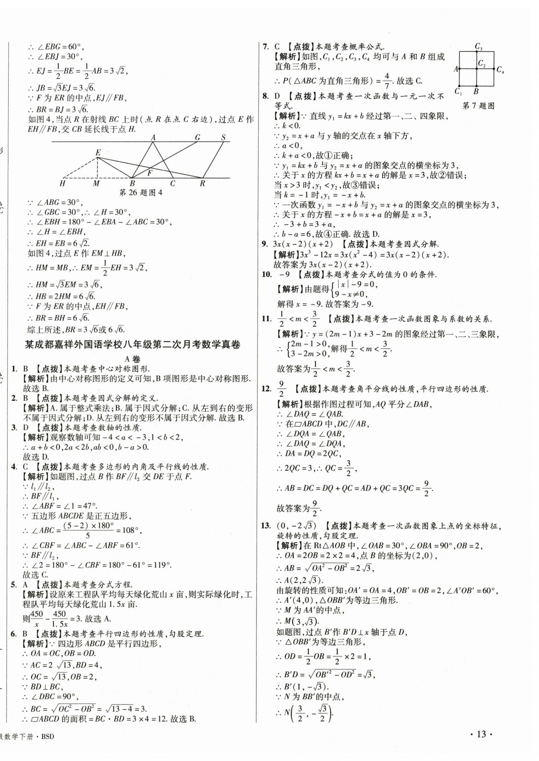 注:目前有些书本章节名称可能整理的还不是很完善,但都是按照顺序排列的,请同学们按照顺序仔细查找。练习册 2025年初中毕业升学真题详解八年级数学下册北师大版 答案主要是用来给同学们做完题方便对答案用的,请勿直接抄袭。