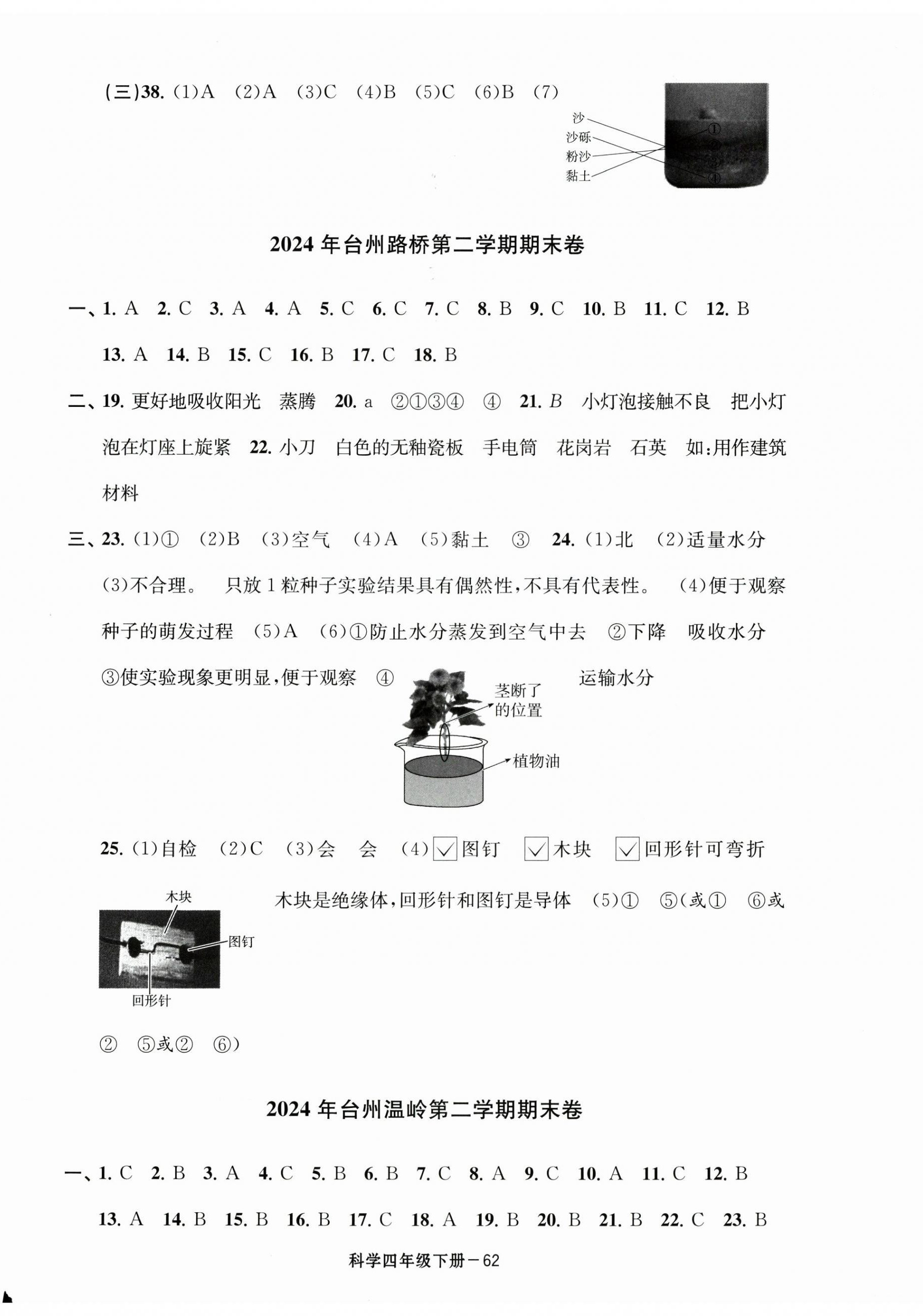 2025年浙江各地期末迎考卷四年级科学下册教科版