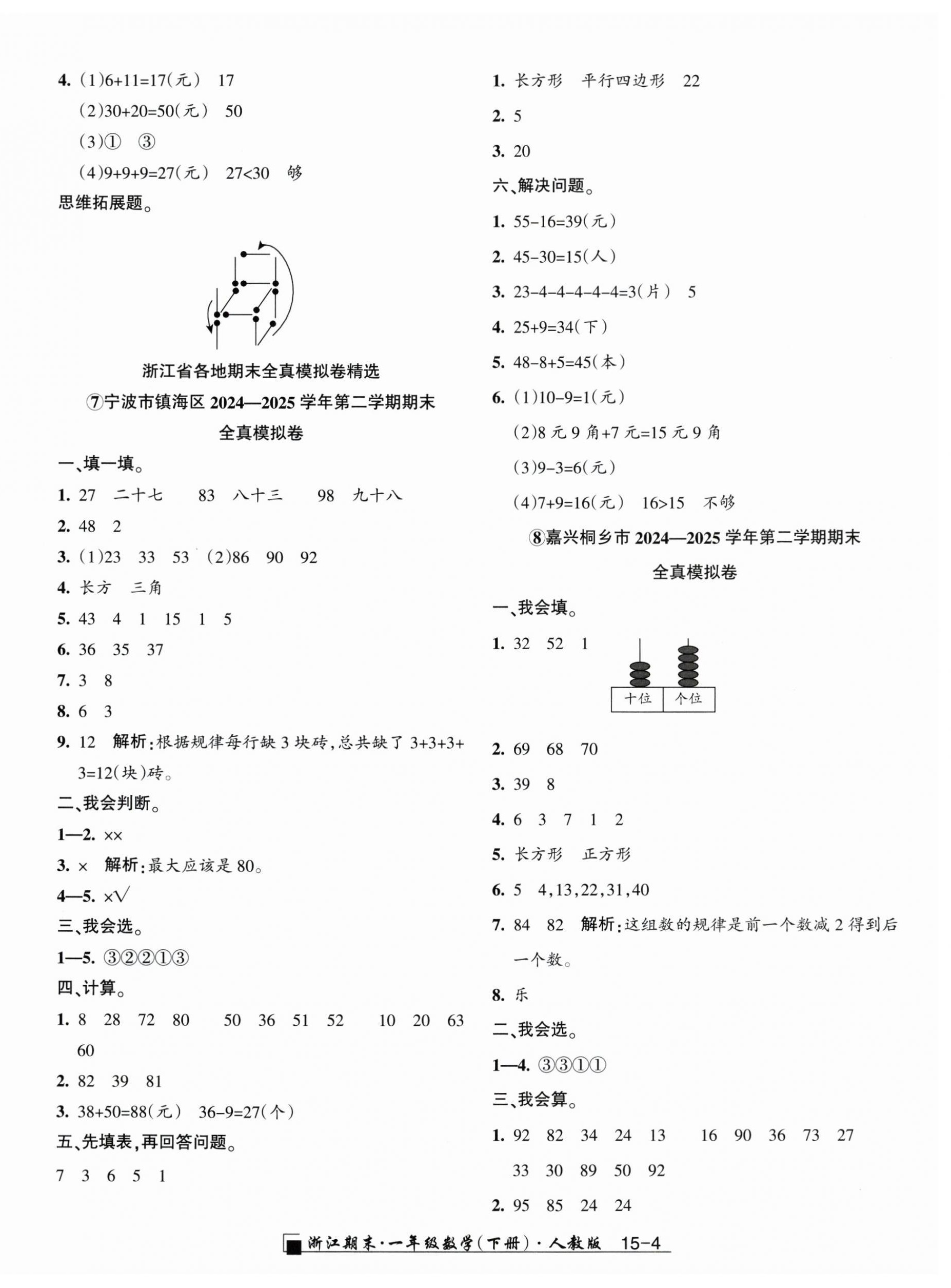 注:目前有些书本章节名称可能整理的还不是很完善,但都是按照顺序排列的,请同学们按照顺序仔细查找。练习册 2025年励耘书业浙江期末一年级数学下册人教版 答案主要是用来给同学们做完题方便对答案用的,请勿直接抄袭。