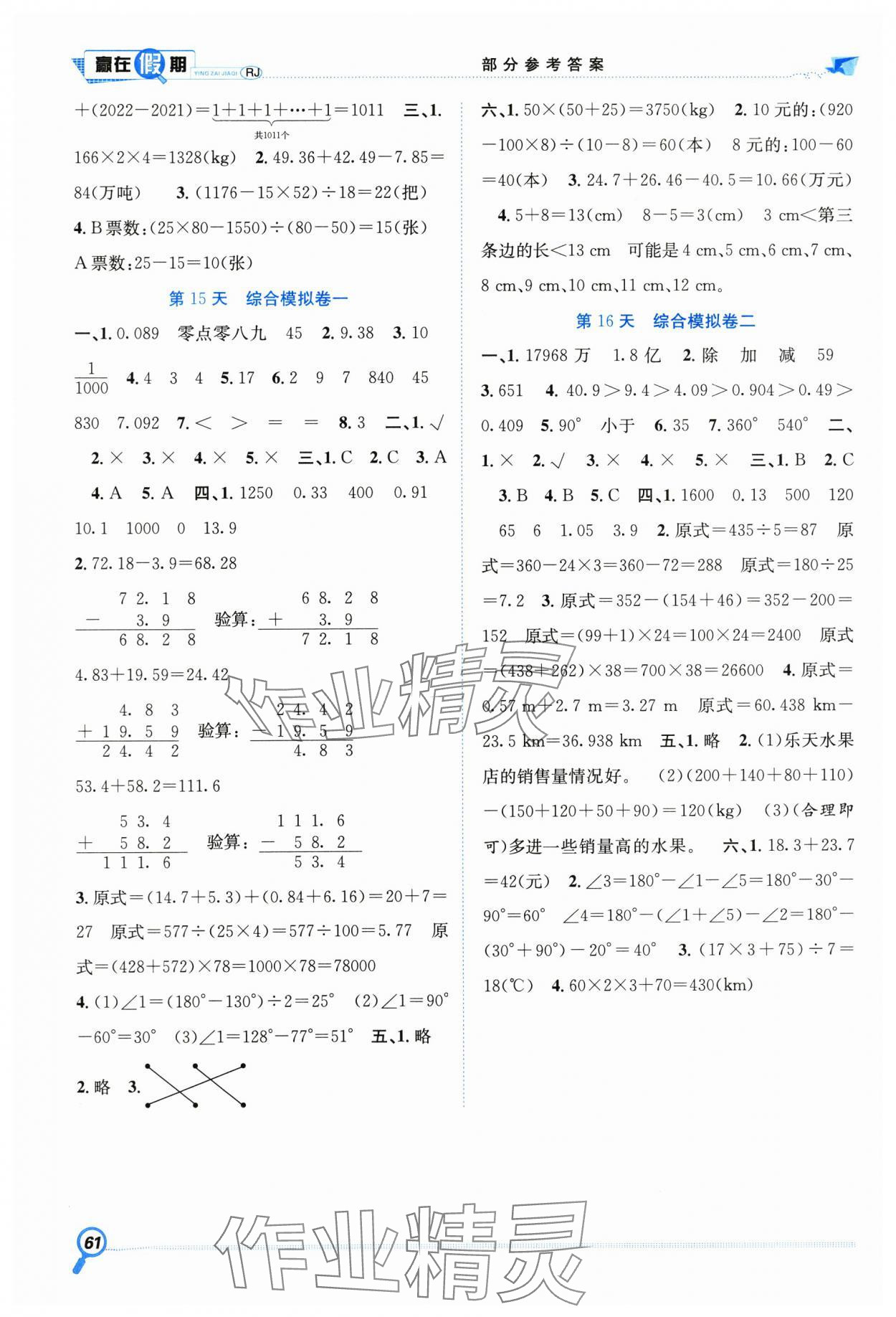 注:目前有些书本章节名称可能整理的还不是很完善,但都是按照顺序排列的,请同学们按照顺序仔细查找。练习册 2025年赢在假期期末加暑假合肥工业大学出版社四年级数学人教版 答案主要是用来给同学们做完题方便对答案用的,请勿直接抄袭。