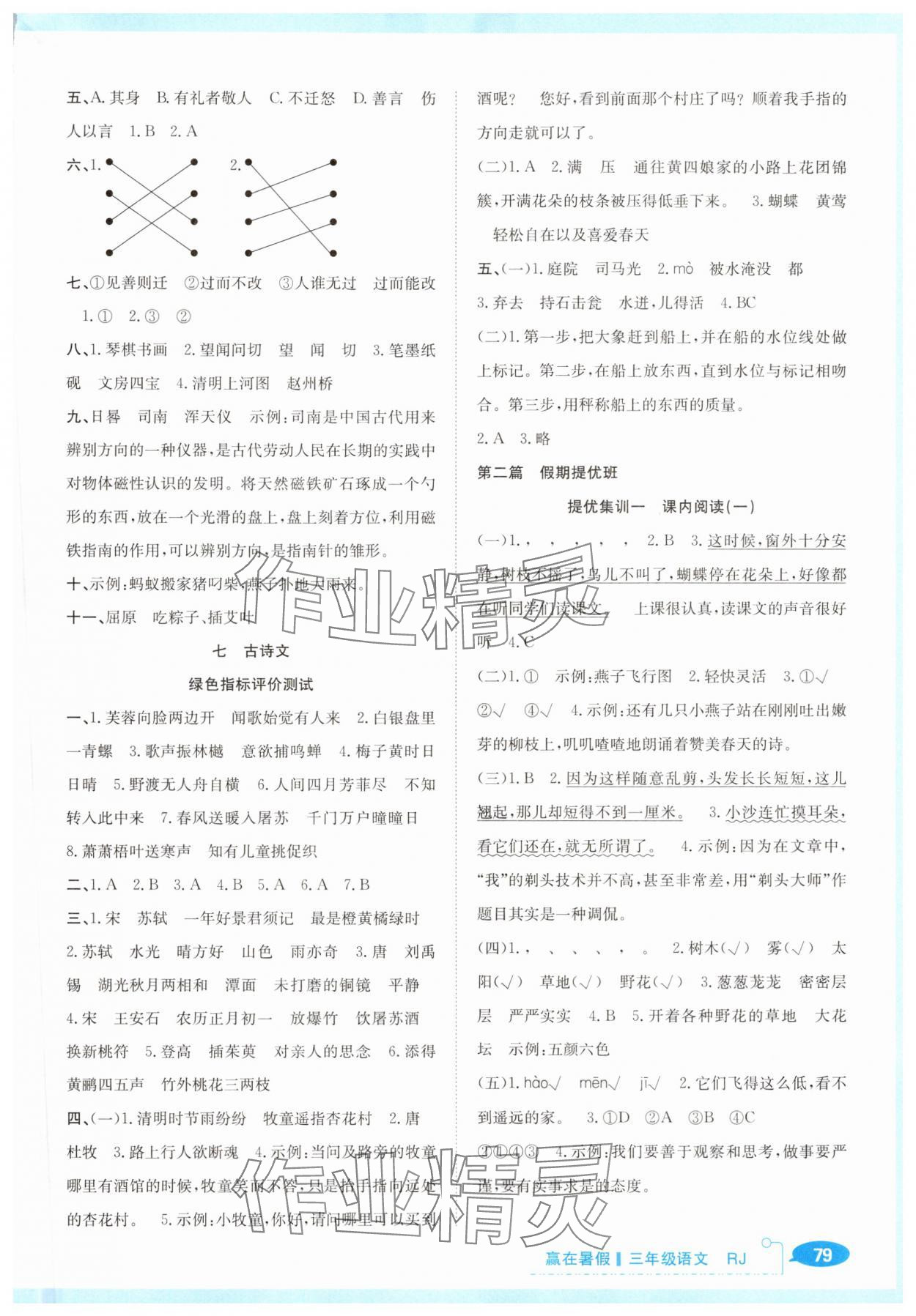 注:目前有些书本章节名称可能整理的还不是很完善,但都是按照顺序排列的,请同学们按照顺序仔细查找。练习册 2025年赢在暑假衔接教材三年级语文人教版 答案主要是用来给同学们做完题方便对答案用的,请勿直接抄袭。