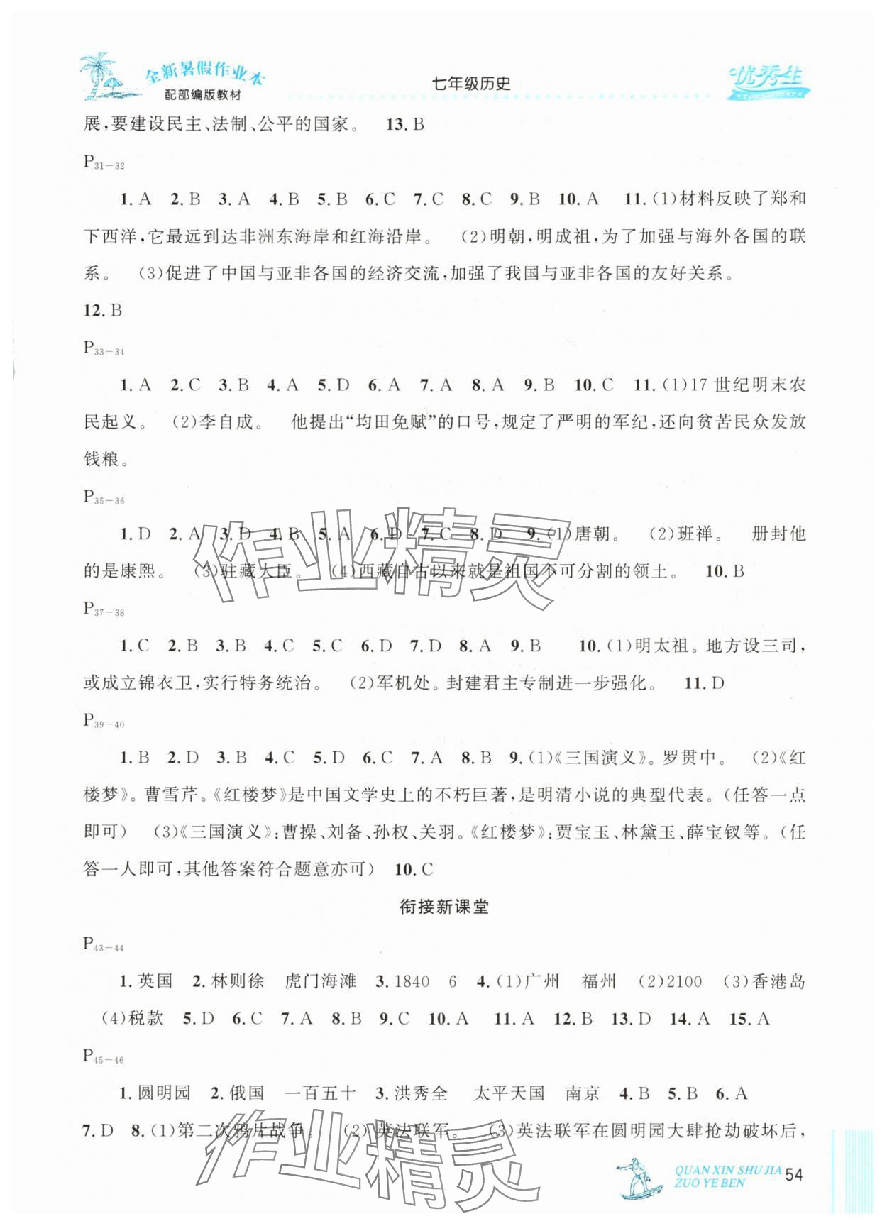 注:目前有些书本章节名称可能整理的还不是很完善,但都是按照顺序排列的,请同学们按照顺序仔细查找。练习册 2025年优秀生快乐假期每一天全新暑假作业本七年级历史部编版延边人民出版社 答案主要是用来给同学们做完题方便对答案用的,请勿直接抄袭。
