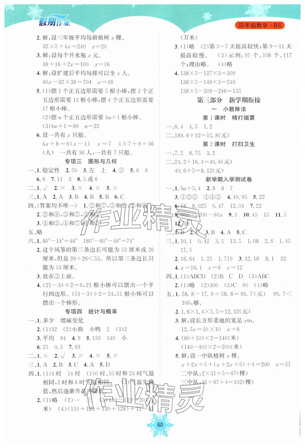 注:目前有些书本章节名称可能整理的还不是很完善,但都是按照顺序排列的,请同学们按照顺序仔细查找。练习册 2025年假期作业南海出版公司四年级数学北师大版 答案主要是用来给同学们做完题方便对答案用的,请勿直接抄袭。
