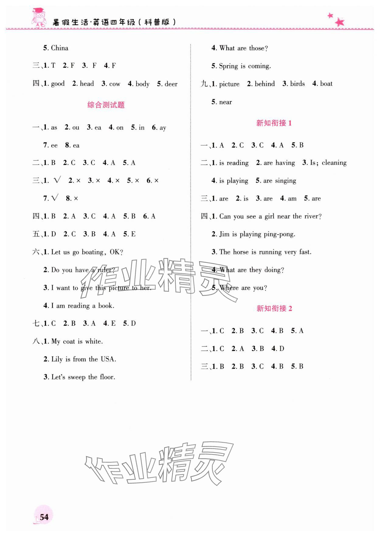 注:目前有些书本章节名称可能整理的还不是很完善,但都是按照顺序排列的,请同学们按照顺序仔细查找。练习册 2025年暑假生活河南教育电子音像出版社四年级英语科普版 答案主要是用来给同学们做完题方便对答案用的,请勿直接抄袭。