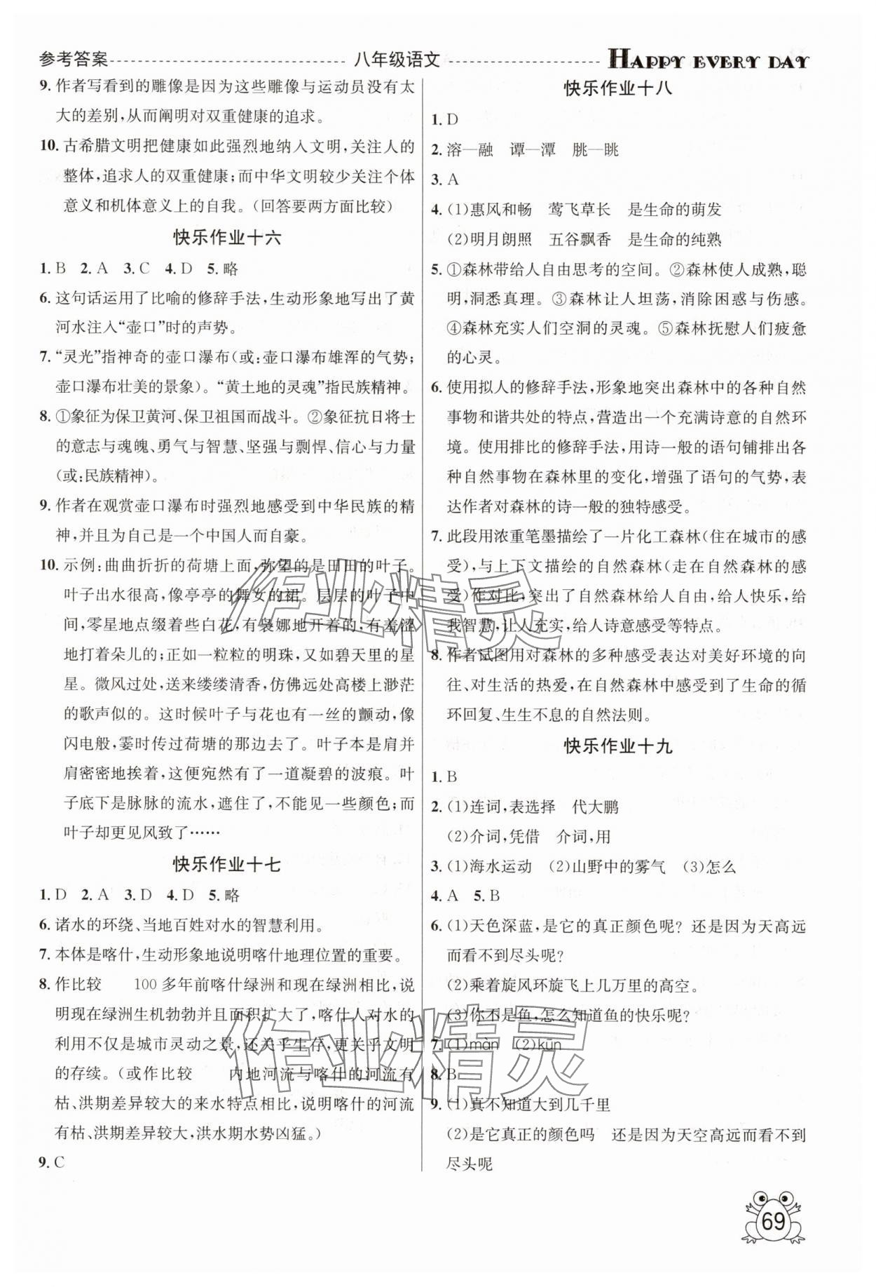 注:目前有些书本章节名称可能整理的还不是很完善,但都是按照顺序排列的,请同学们按照顺序仔细查找。练习册 2025年七彩假期暑假作业八年级语文 答案主要是用来给同学们做完题方便对答案用的,请勿直接抄袭。