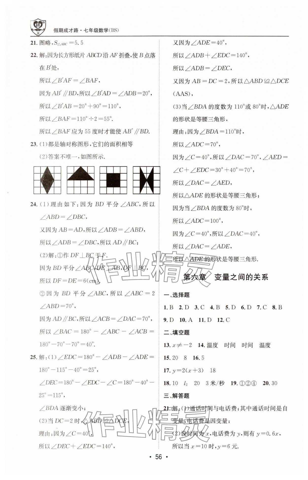 注:目前有些书本章节名称可能整理的还不是很完善,但都是按照顺序排列的,请同学们按照顺序仔细查找。练习册 2025年假期成才路七年级数学北师大版 答案主要是用来给同学们做完题方便对答案用的,请勿直接抄袭。