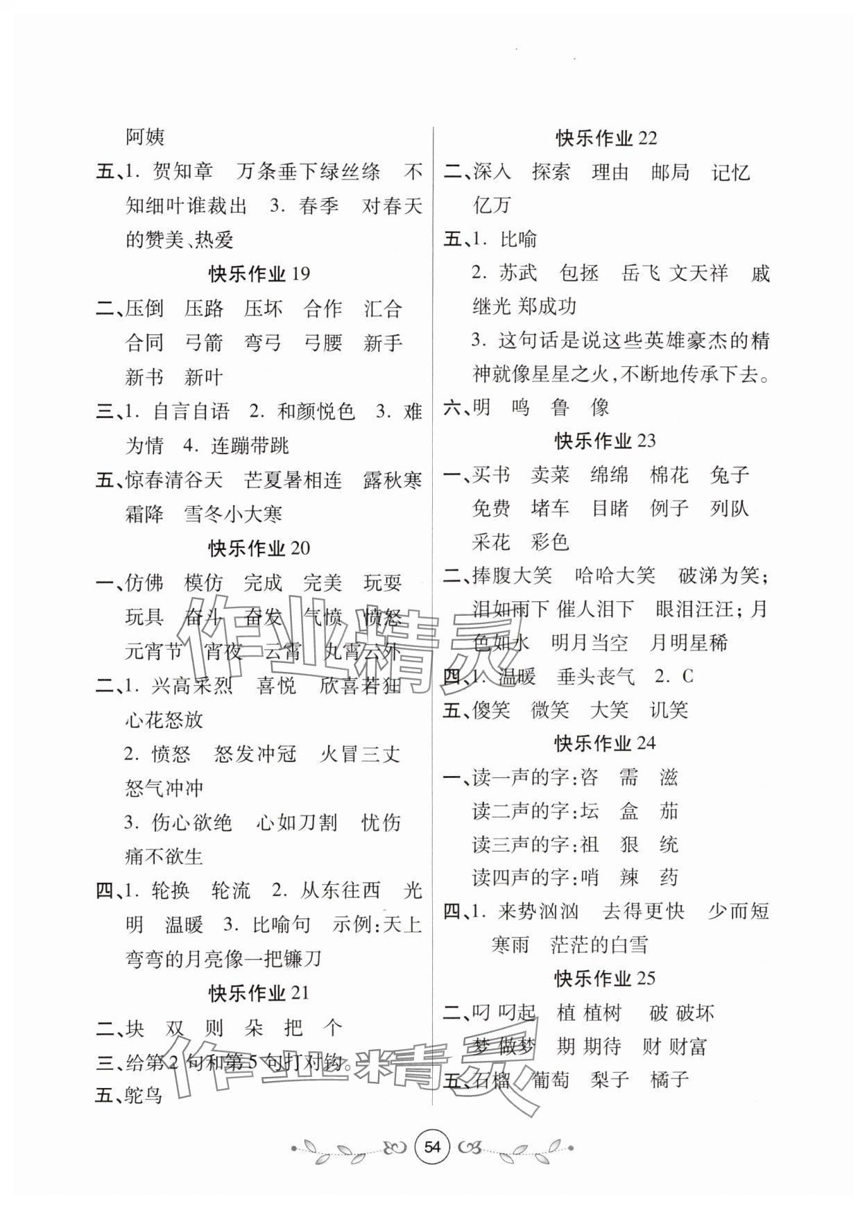 2025年书香天博暑假作业二年级语文人教版西安出版社