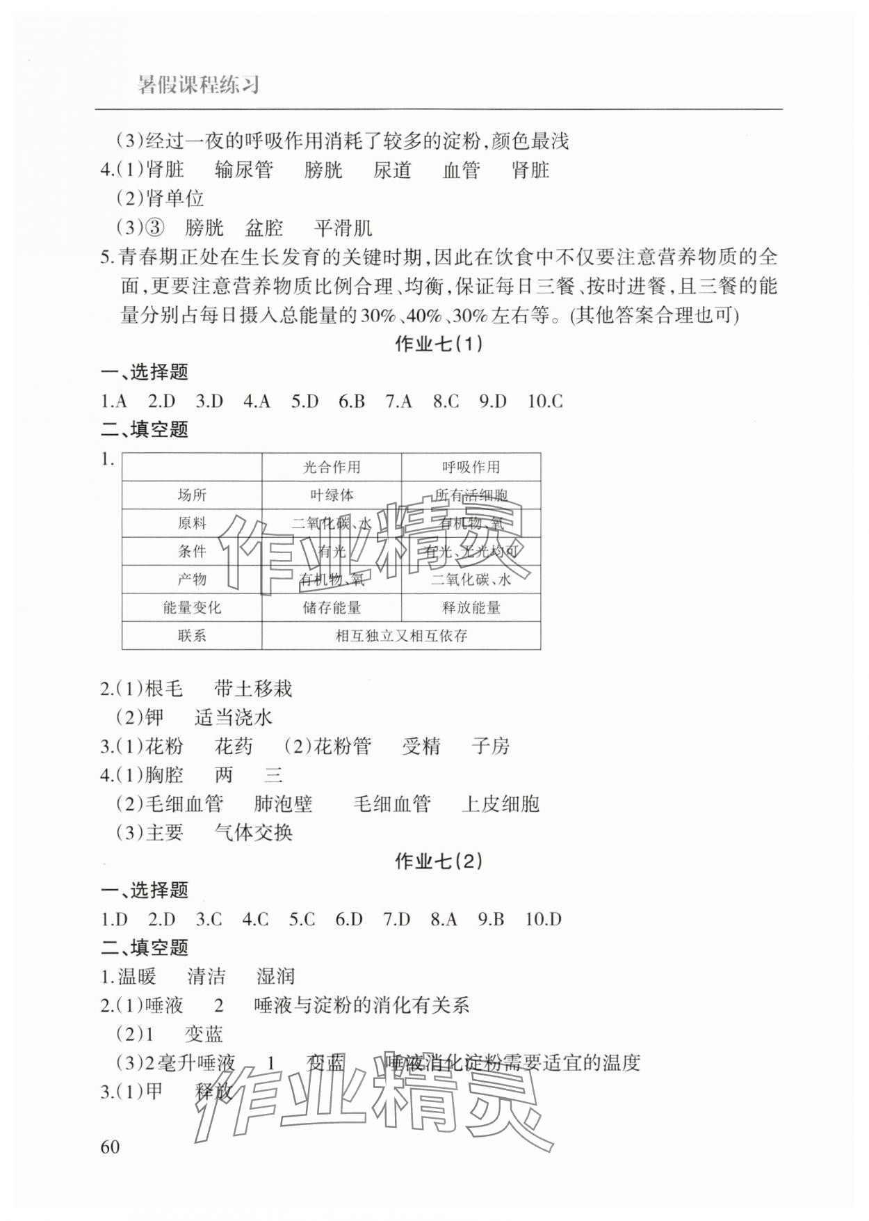 注:目前有些书本章节名称可能整理的还不是很完善,但都是按照顺序排列的,请同学们按照顺序仔细查找。练习册 2025年暑假课程练习南方出版社七年级生物 答案主要是用来给同学们做完题方便对答案用的,请勿直接抄袭。