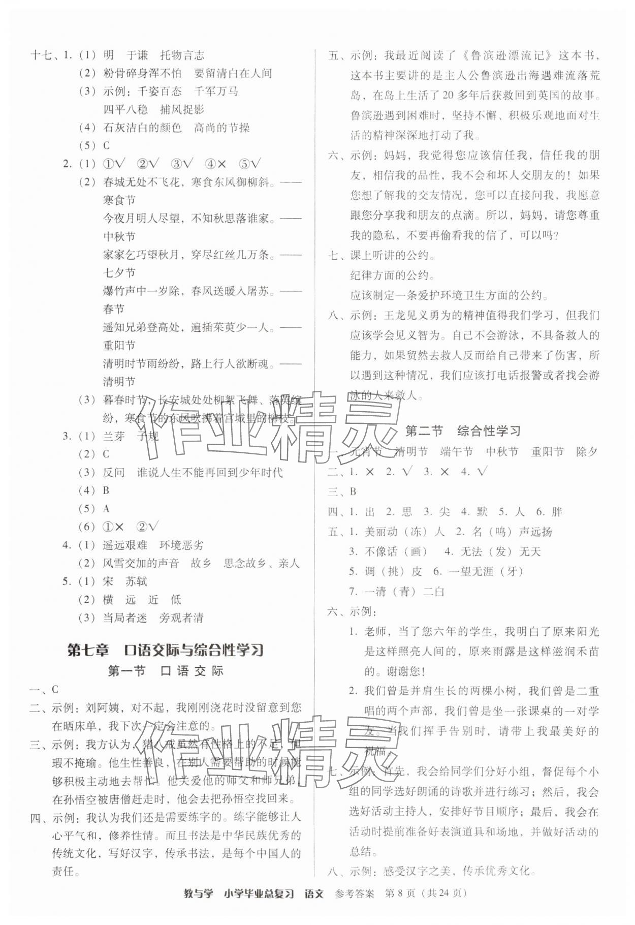 注:目前有些书本章节名称可能整理的还不是很完善,但都是按照顺序排列的,请同学们按照顺序仔细查找。练习册 2025年教与学小学毕业总复习语文 答案主要是用来给同学们做完题方便对答案用的,请勿直接抄袭。