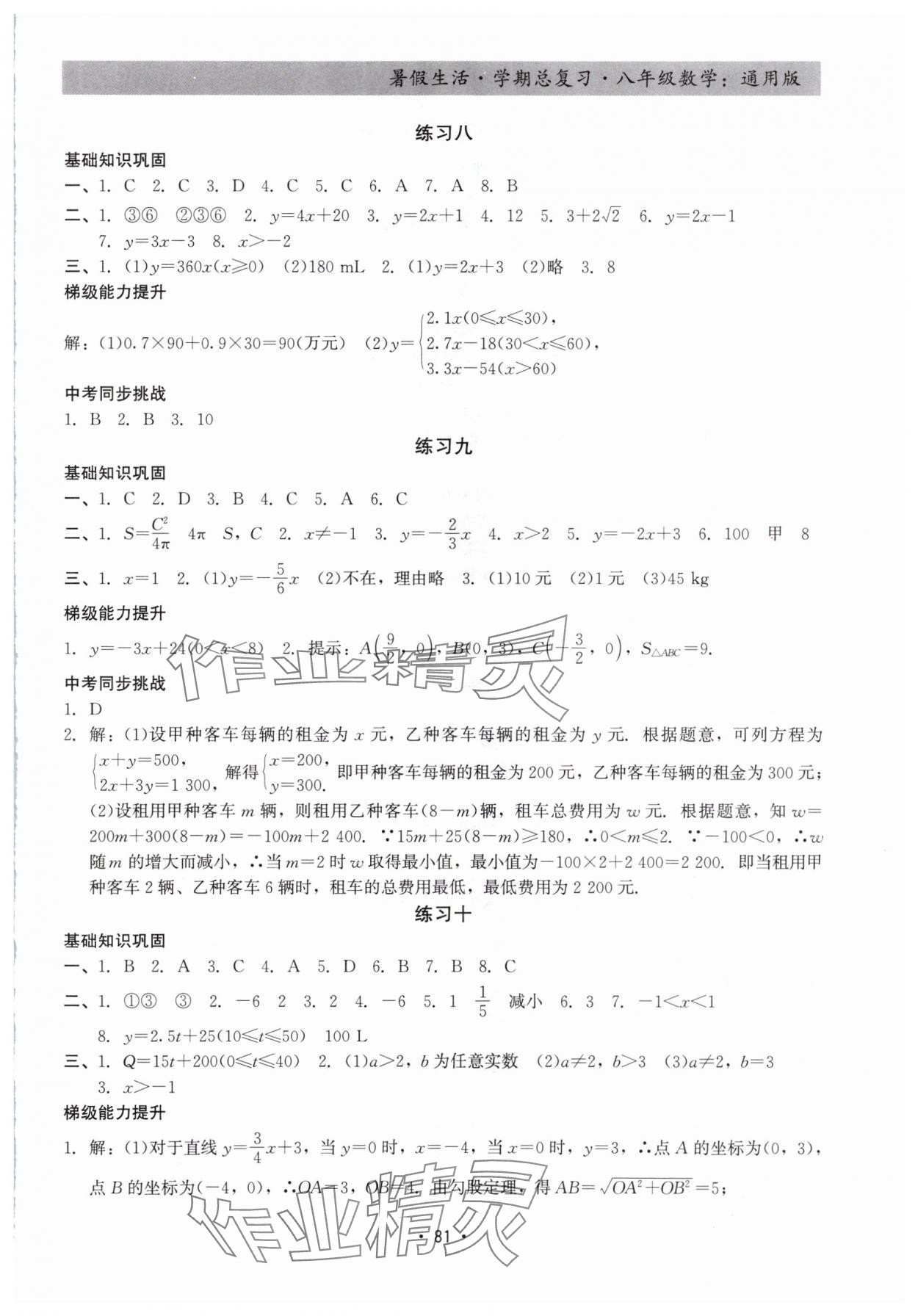 注:目前有些书本章节名称可能整理的还不是很完善,但都是按照顺序排列的,请同学们按照顺序仔细查找。练习册 2025年暑假生活学期总复习八年级数学通用版 答案主要是用来给同学们做完题方便对答案用的,请勿直接抄袭。