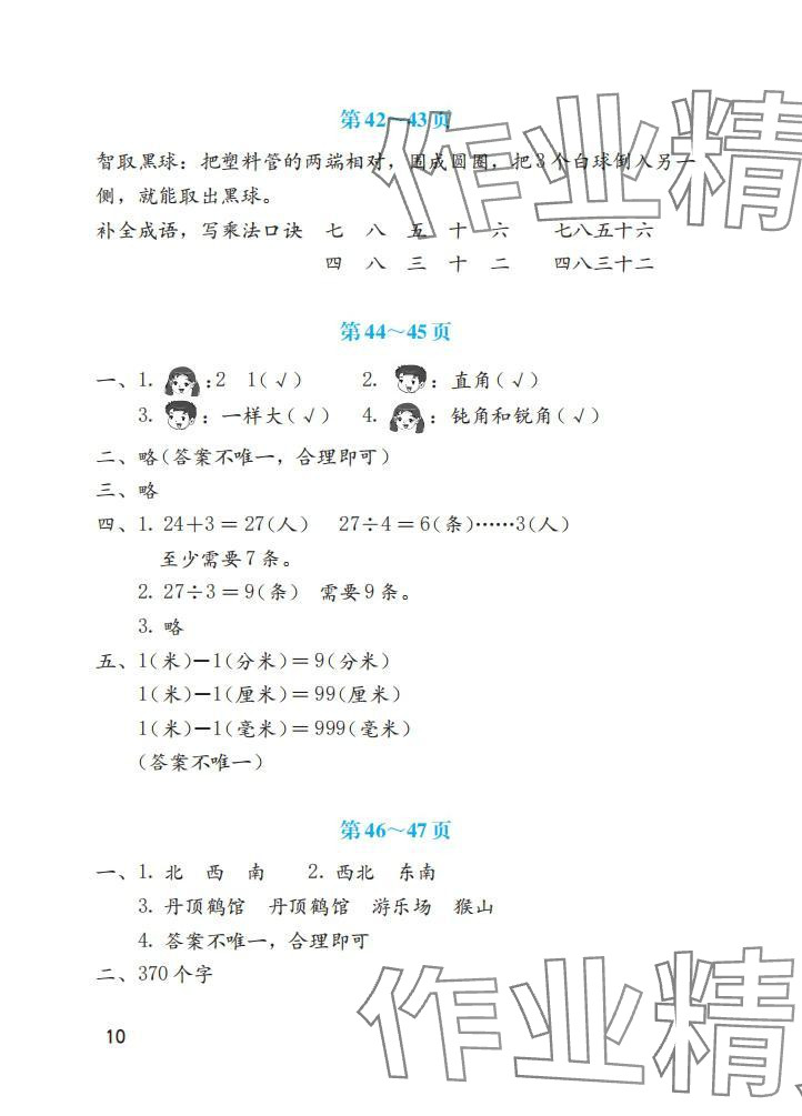 注:目前有些书本章节名称可能整理的还不是很完善,但都是按照顺序排列的,请同学们按照顺序仔细查找。练习册 2025年暑假生活海燕出版社二年级数学北师大版 答案主要是用来给同学们做完题方便对答案用的,请勿直接抄袭。