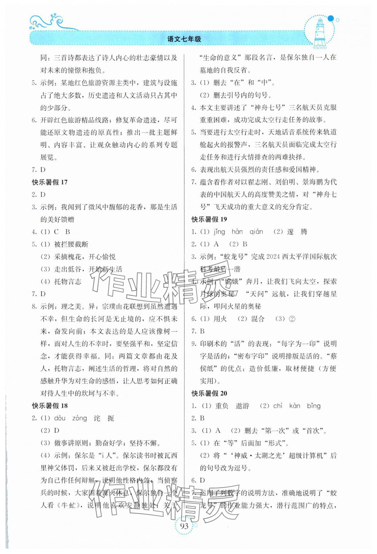 2025年新课堂暑假生活贵州教育出版社七年级语文人教版